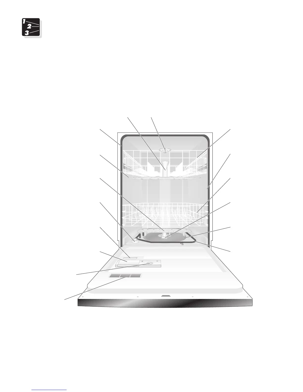 Frigidaire Gallery PLDB998AC0 - Dishwasher Features; Key Components and Locations