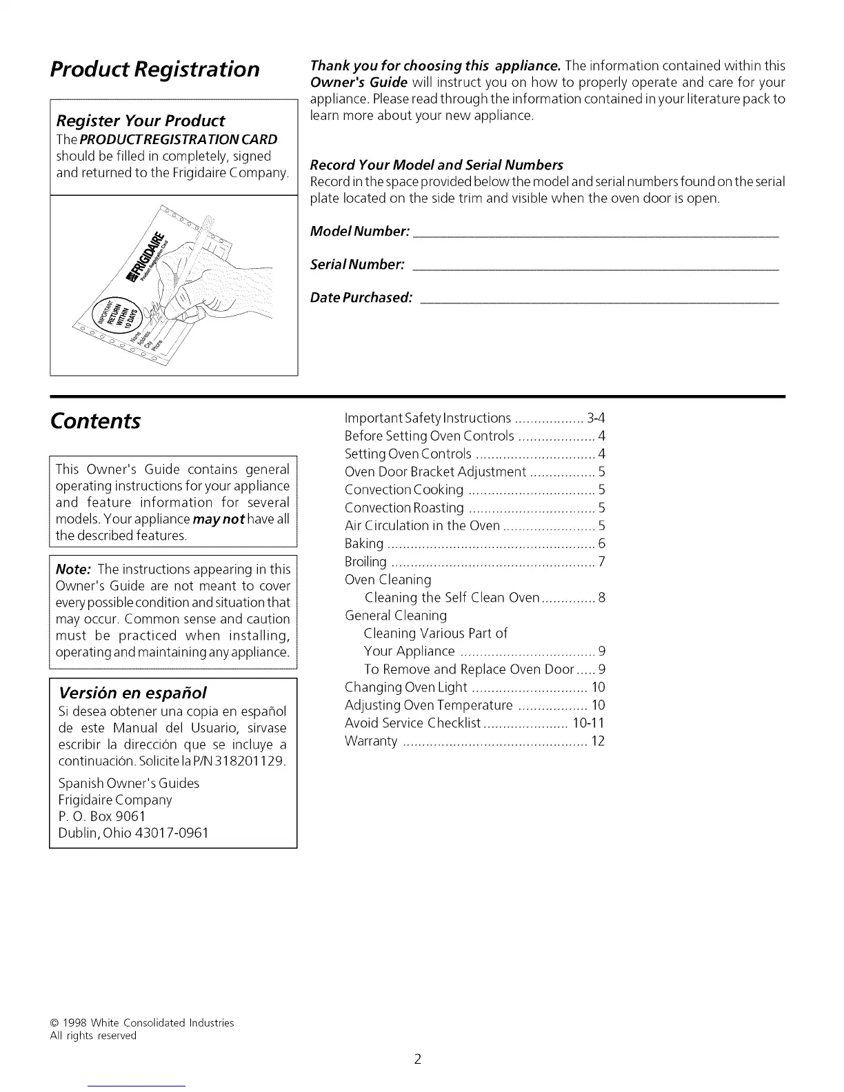 Recordin the space provided belowthe model and serialnumbers found on the serial