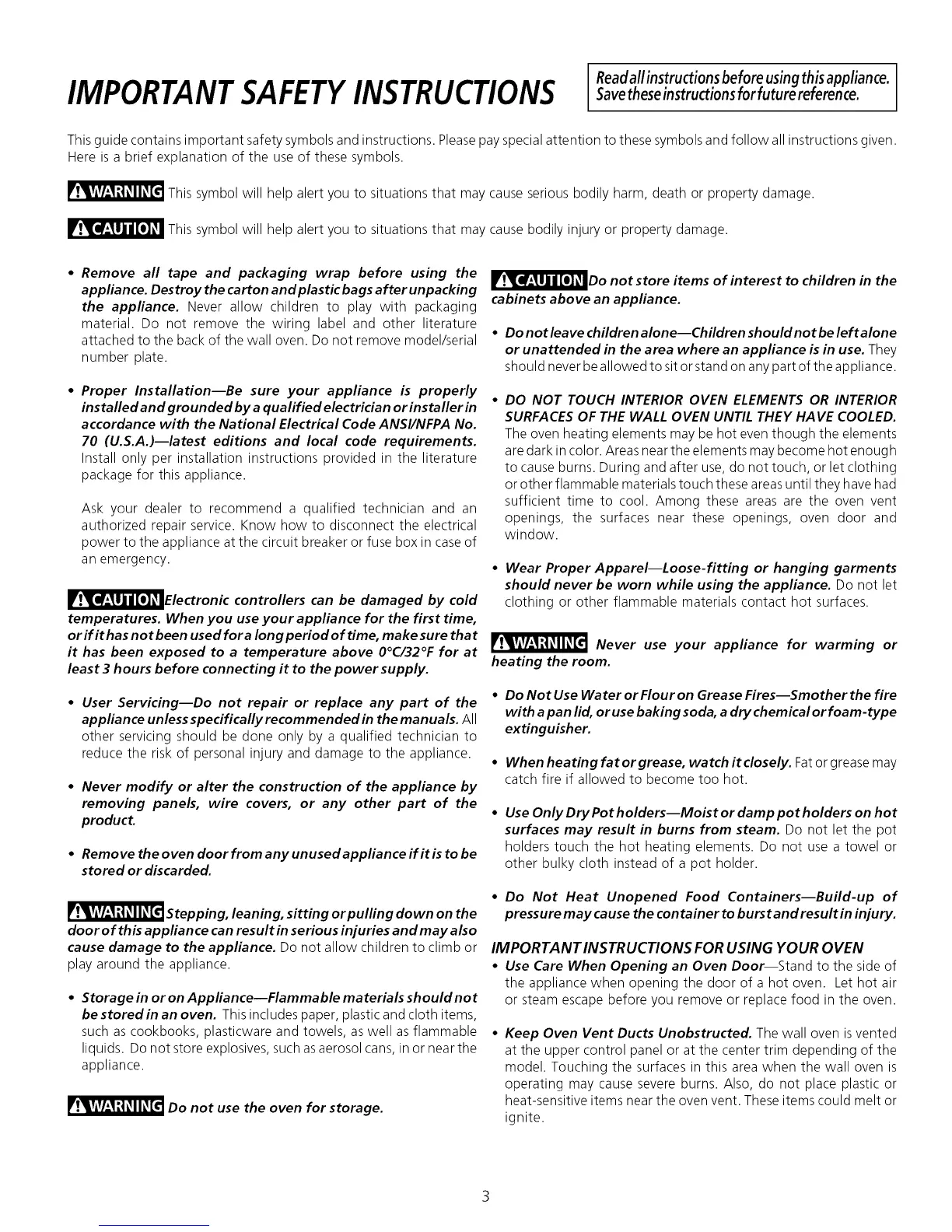 IMPORTANT INSTRUCTIONS FOR USING YOUR OVEN