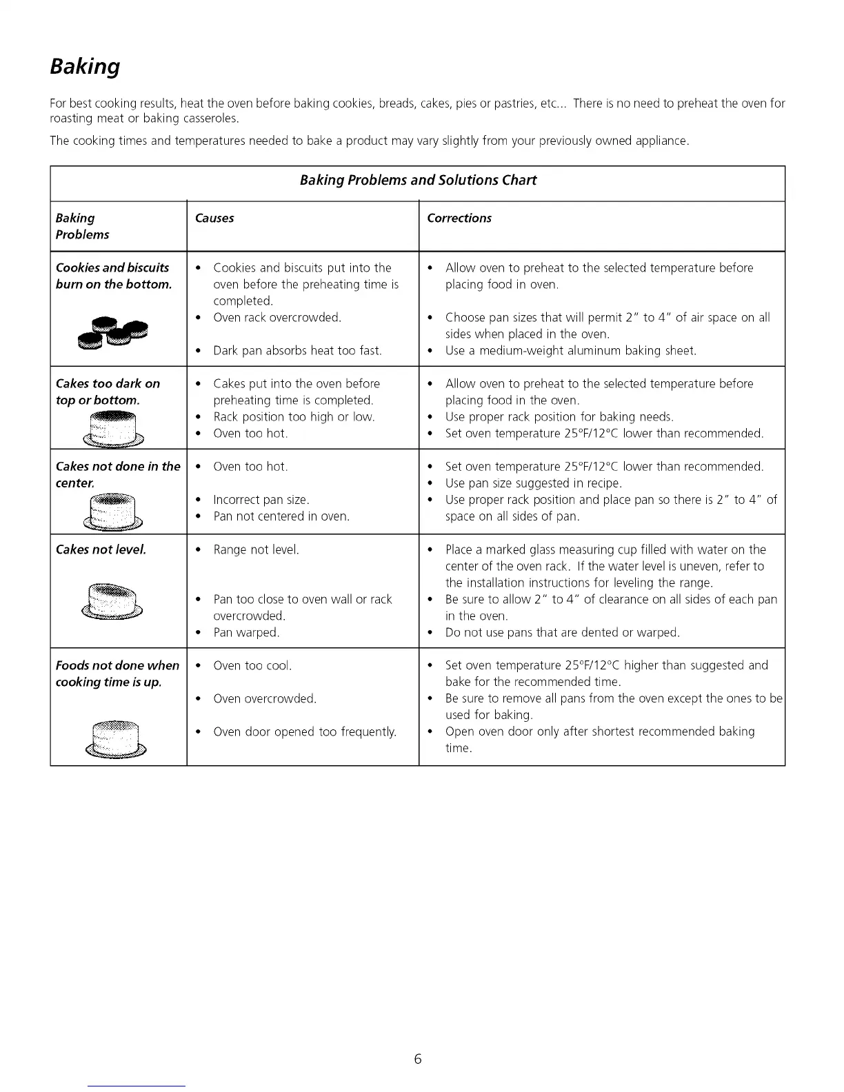 The cooking times and temperatures needed to bake a product may vary slightly from your previously owned appliance.