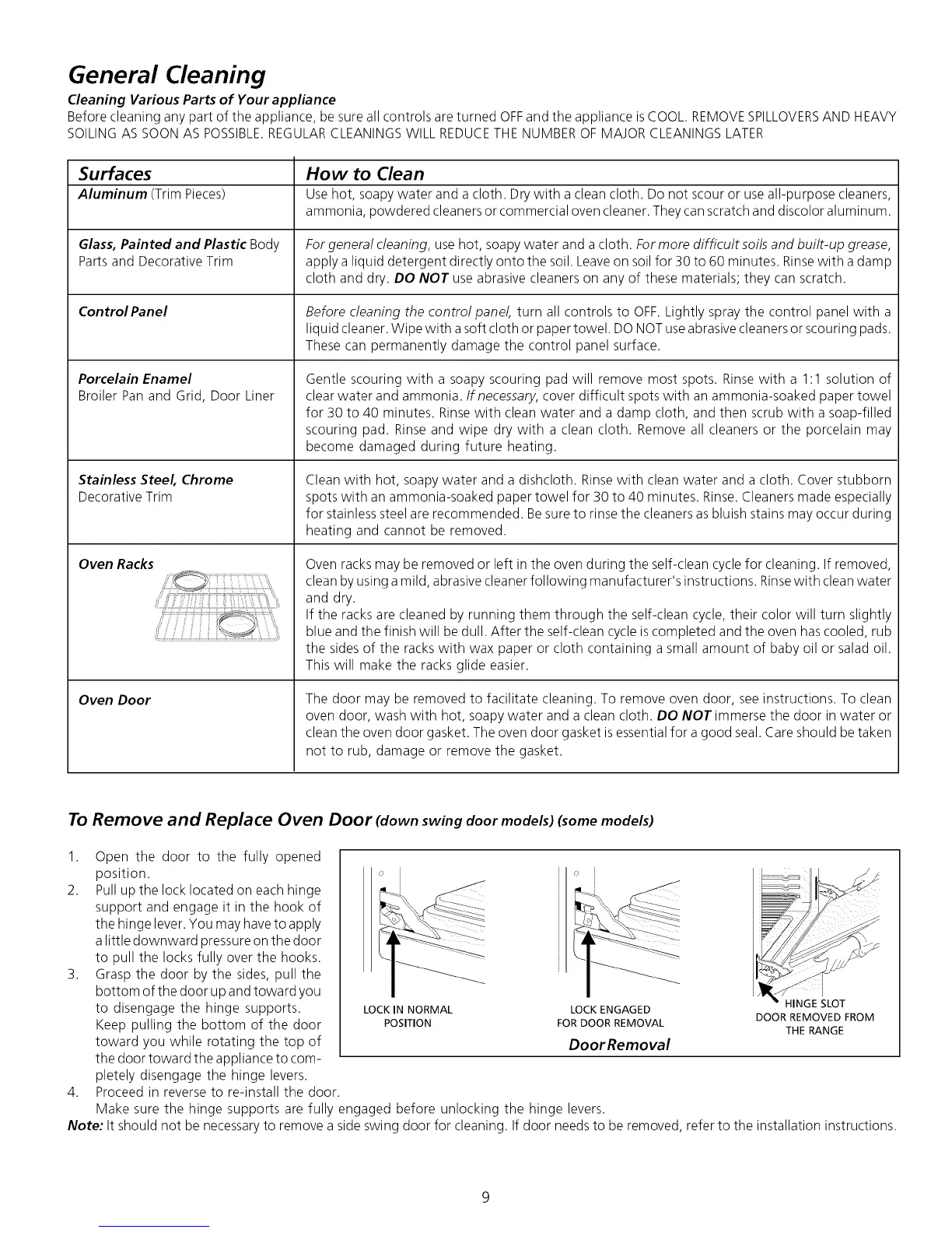 The door may be removed to facilitate cleaning. To remove oven door, see instructions. To clean