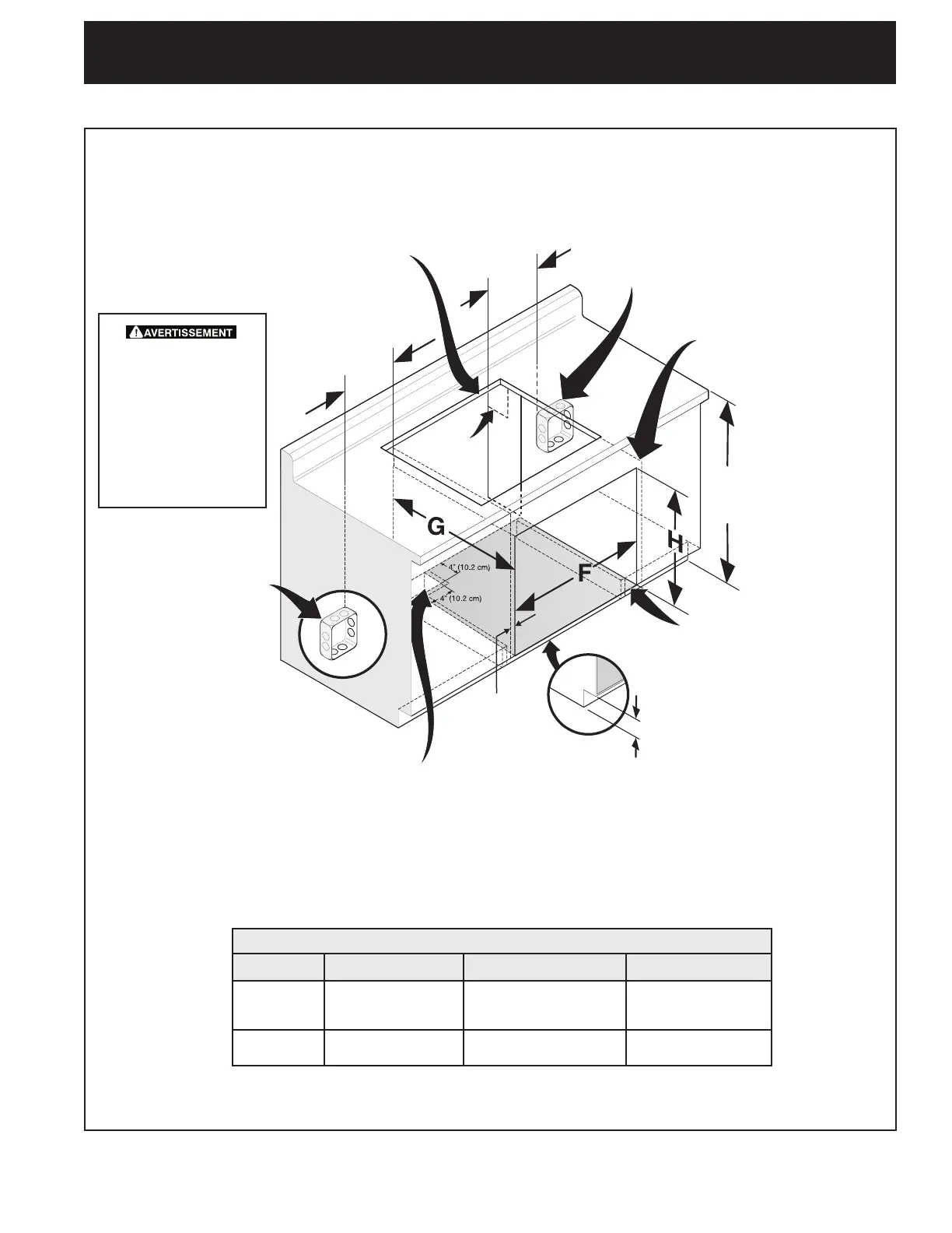 Note 1: Découpez une ouverture de 4” x 4” (10.2cm X