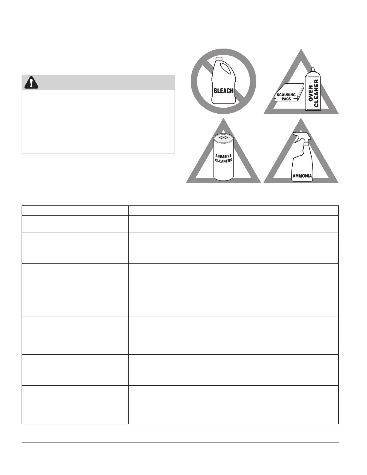 er, or cleaner containing abrasives, chlorides, chlorine, or ammonia.