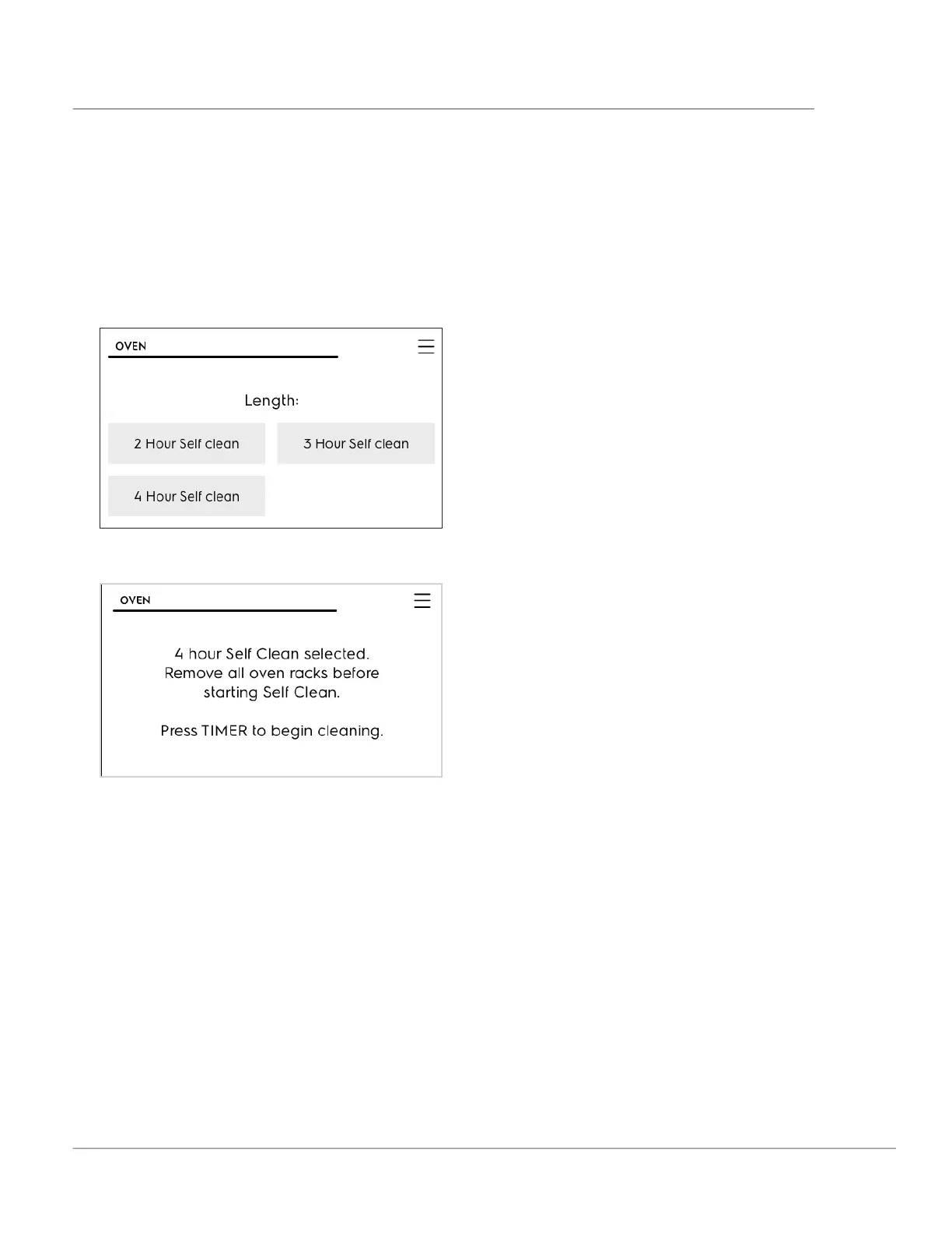 3. Touch Self Clean and select 2 hour, 3 hour, or