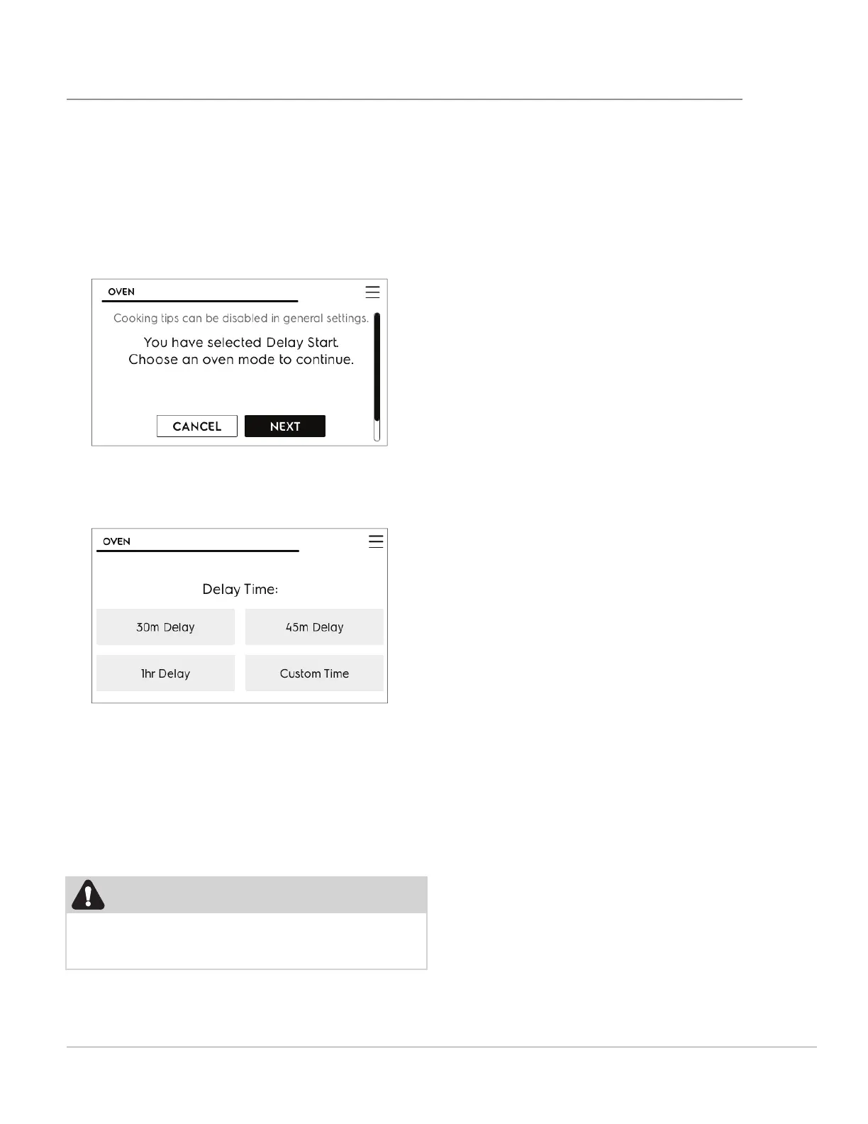 When the Delay Start time is reached, the oven will