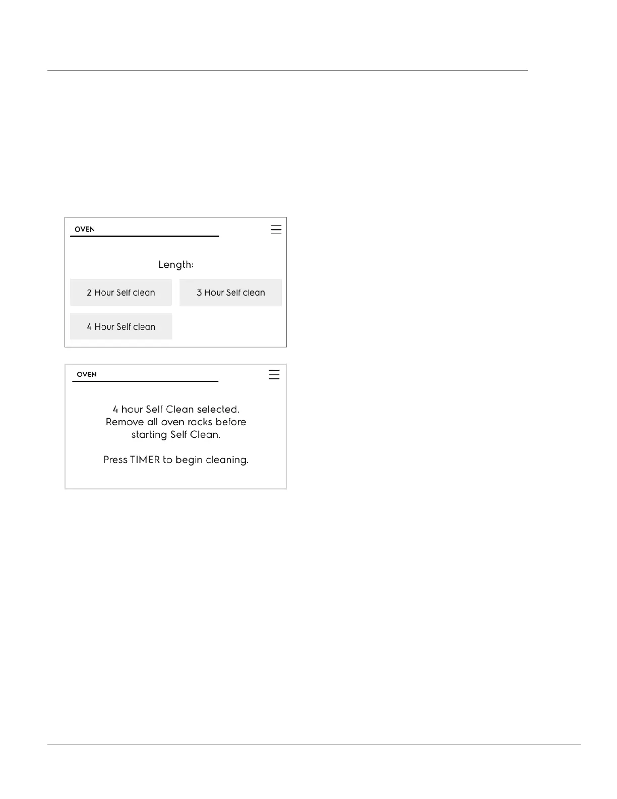 3. Touch Self Clean and select 2 hour, 3 hour, or