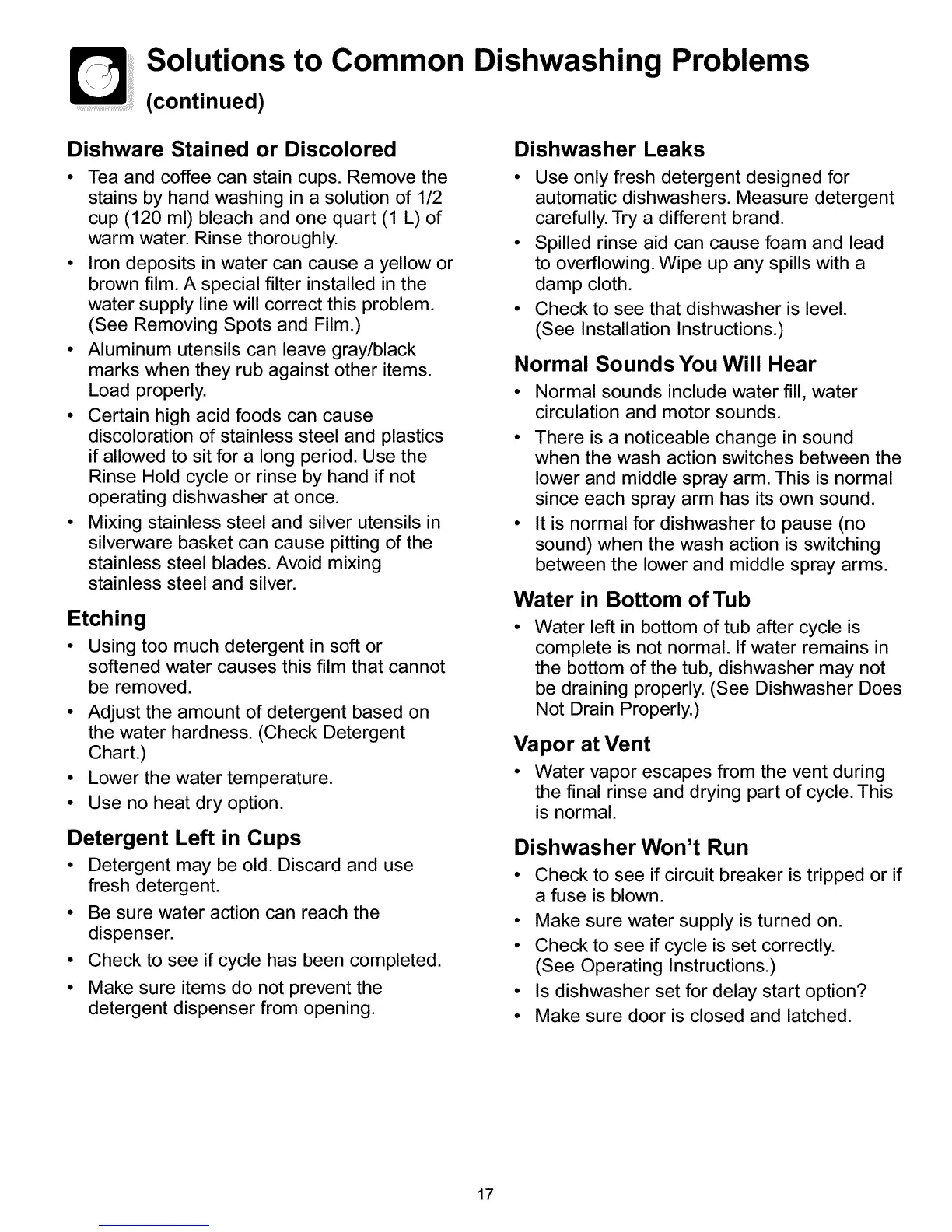 Dishwashing Problems