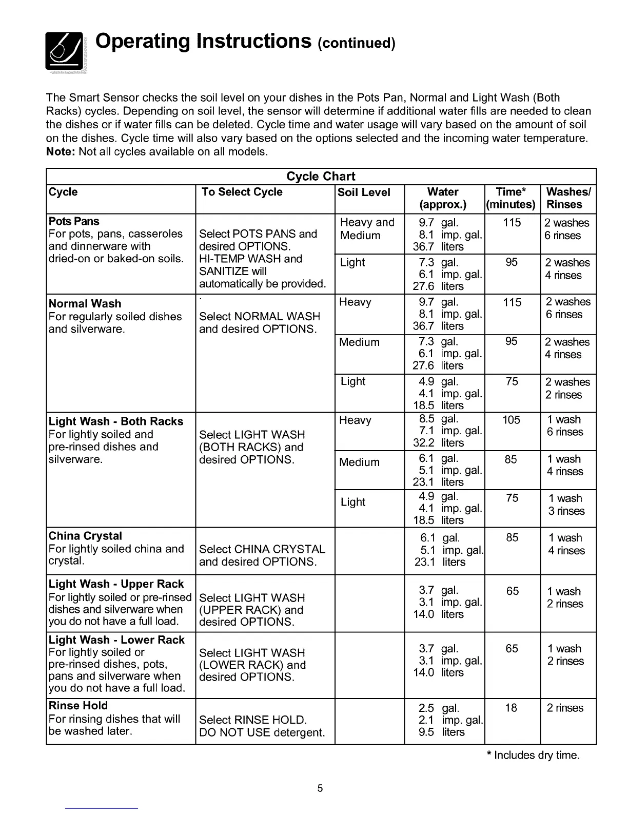 the dishes or if water fills can be deleted. Cycle time and water usage will vary based on the amount of soil