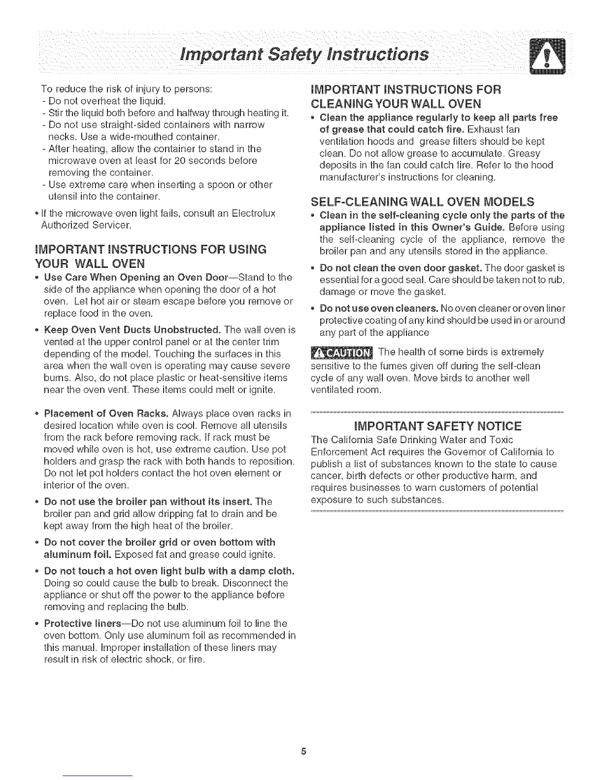area when the wall oven is operating may cause severe