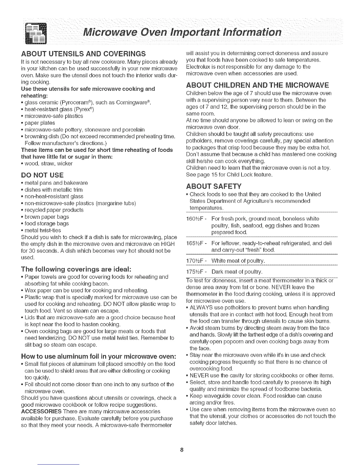 oCheck foods to see that they are cooked to the United