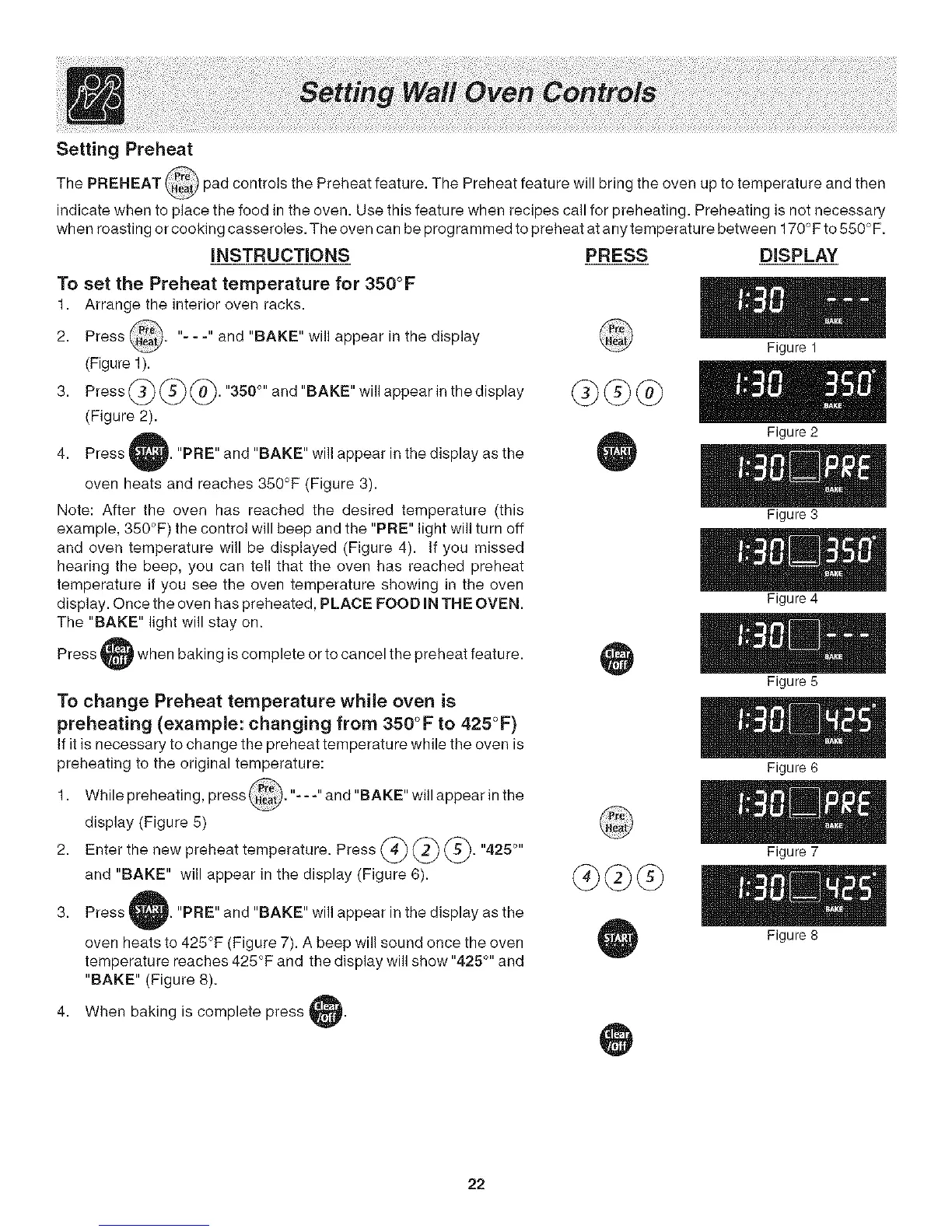 4. Press O. "PRE"and"BAKE"willappearinthedisplayasthe