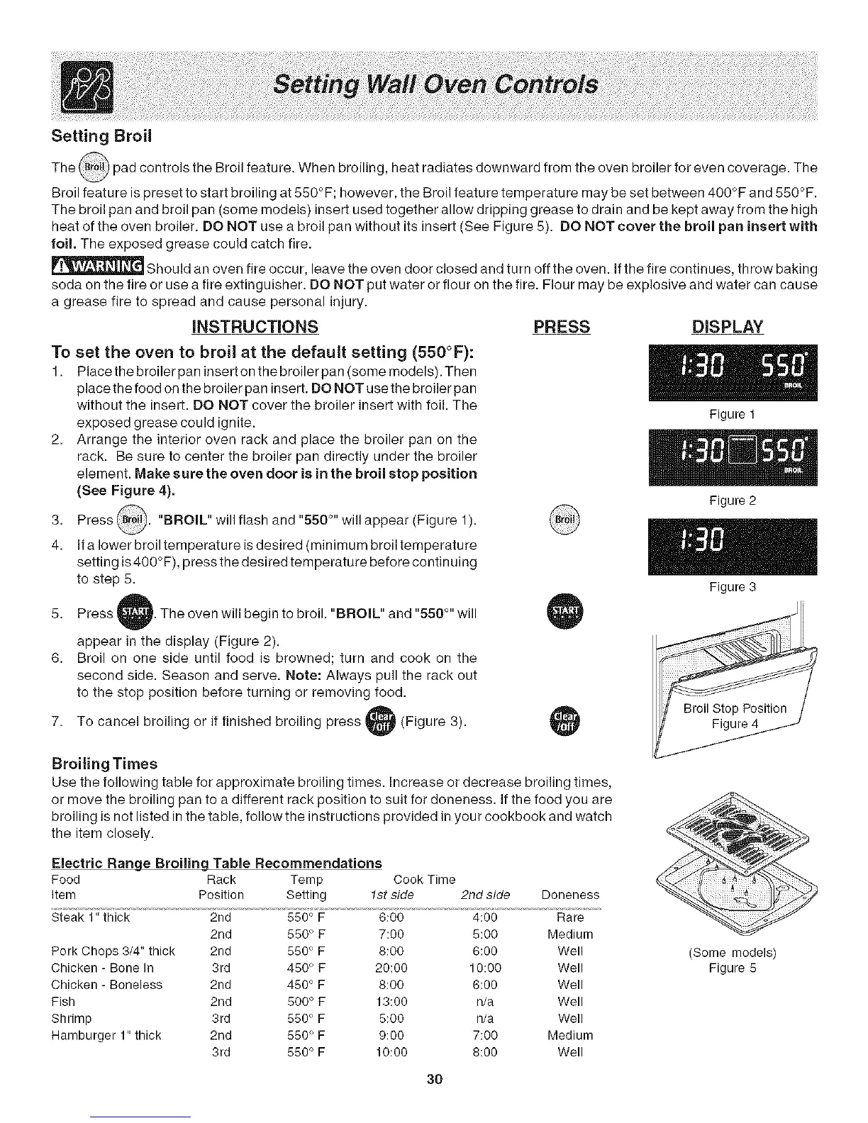 Electric Range Broiling Table Recommendations