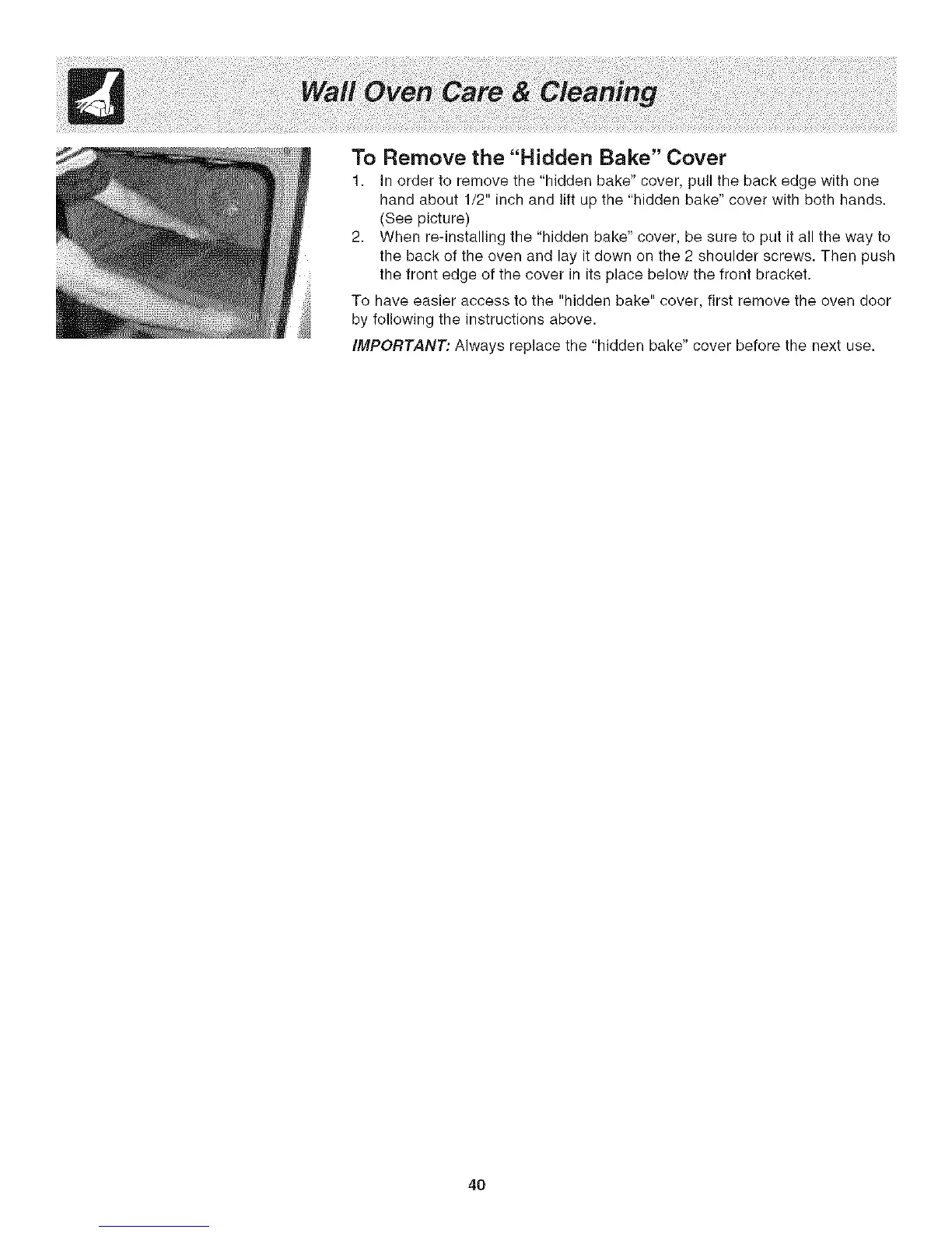 iMPORTANT: Always replace the "hidden bake" cover before the next use.