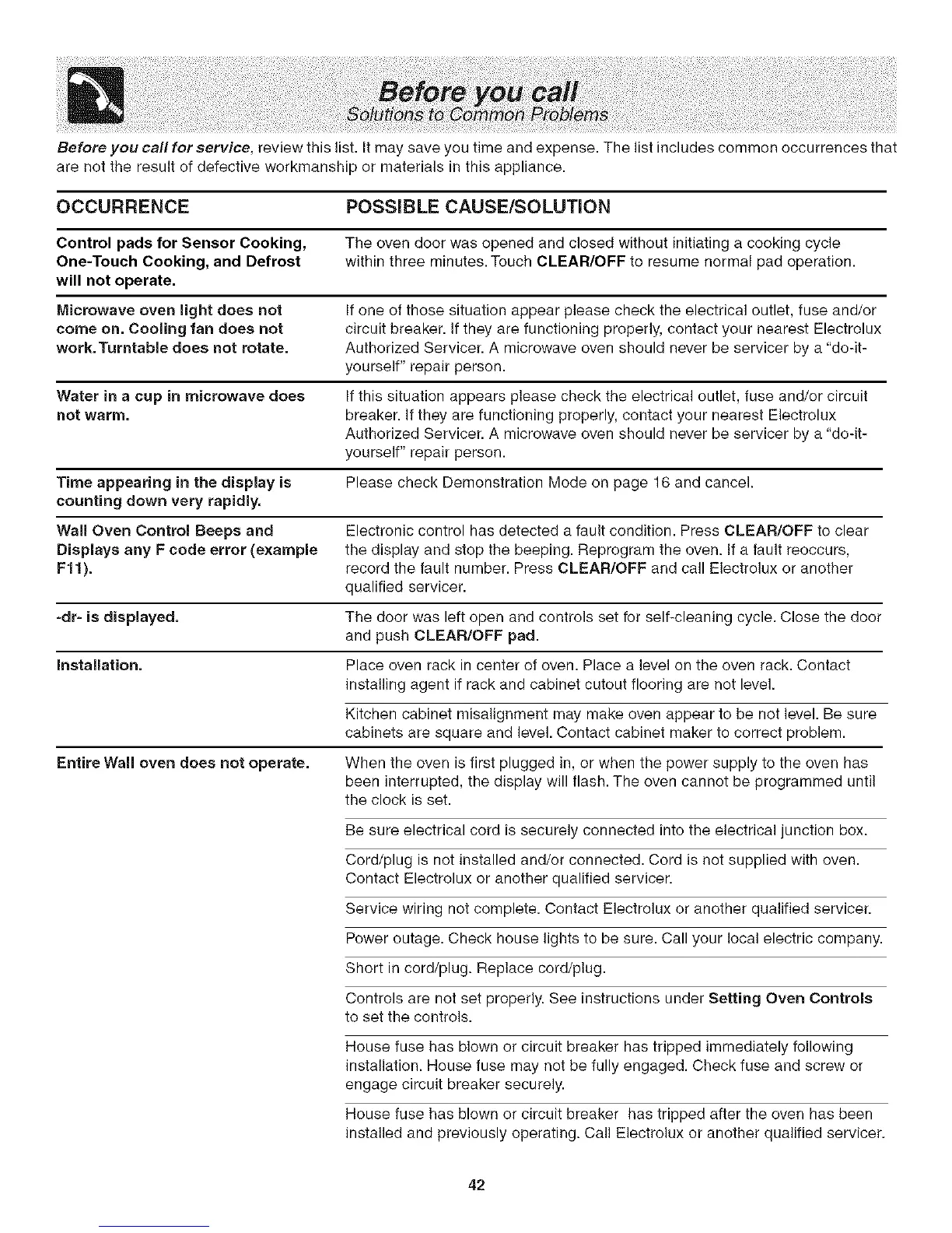 installed and previously operating. Call Electrolux or another qualified servicer.