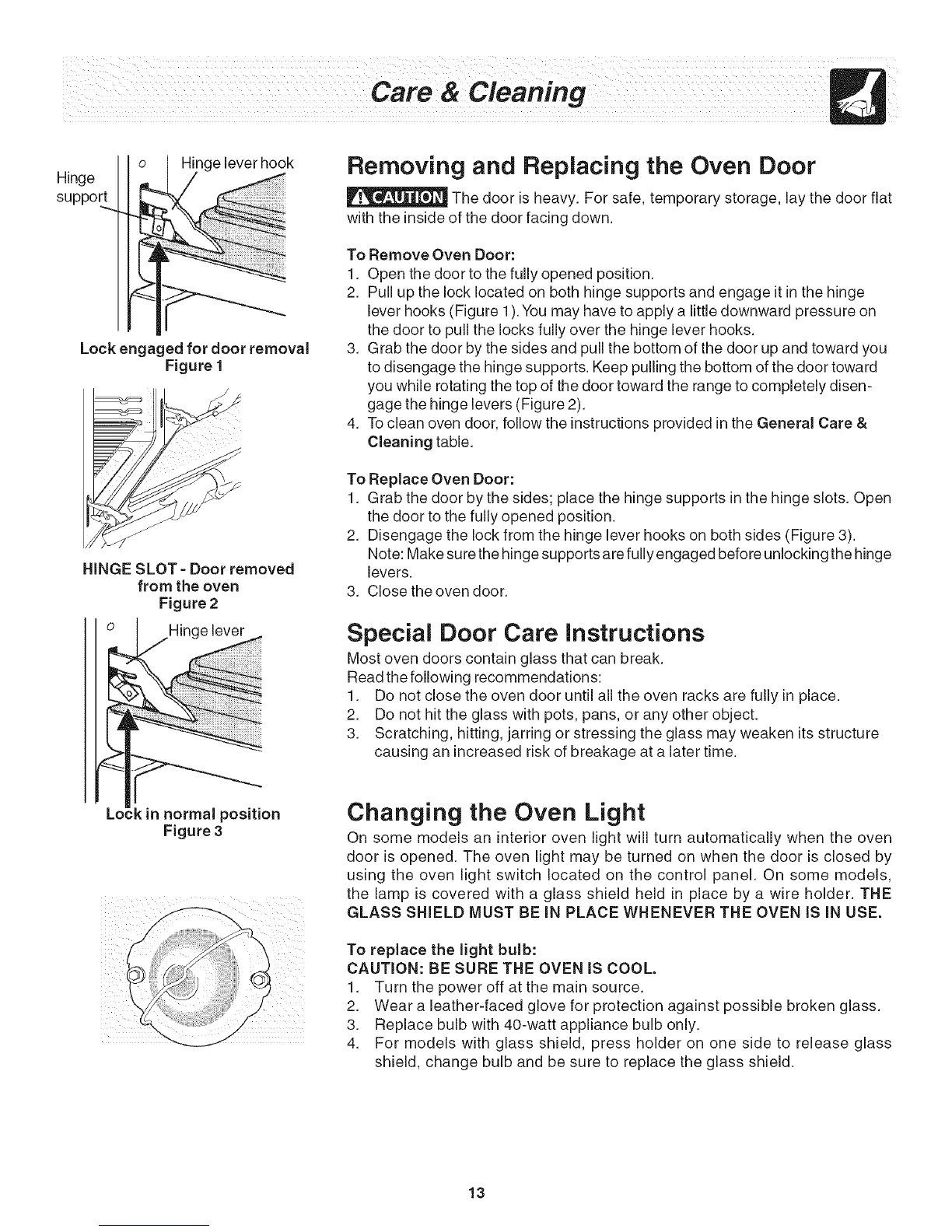 CAUTION: BE SURE THE OVEN iS COOL.