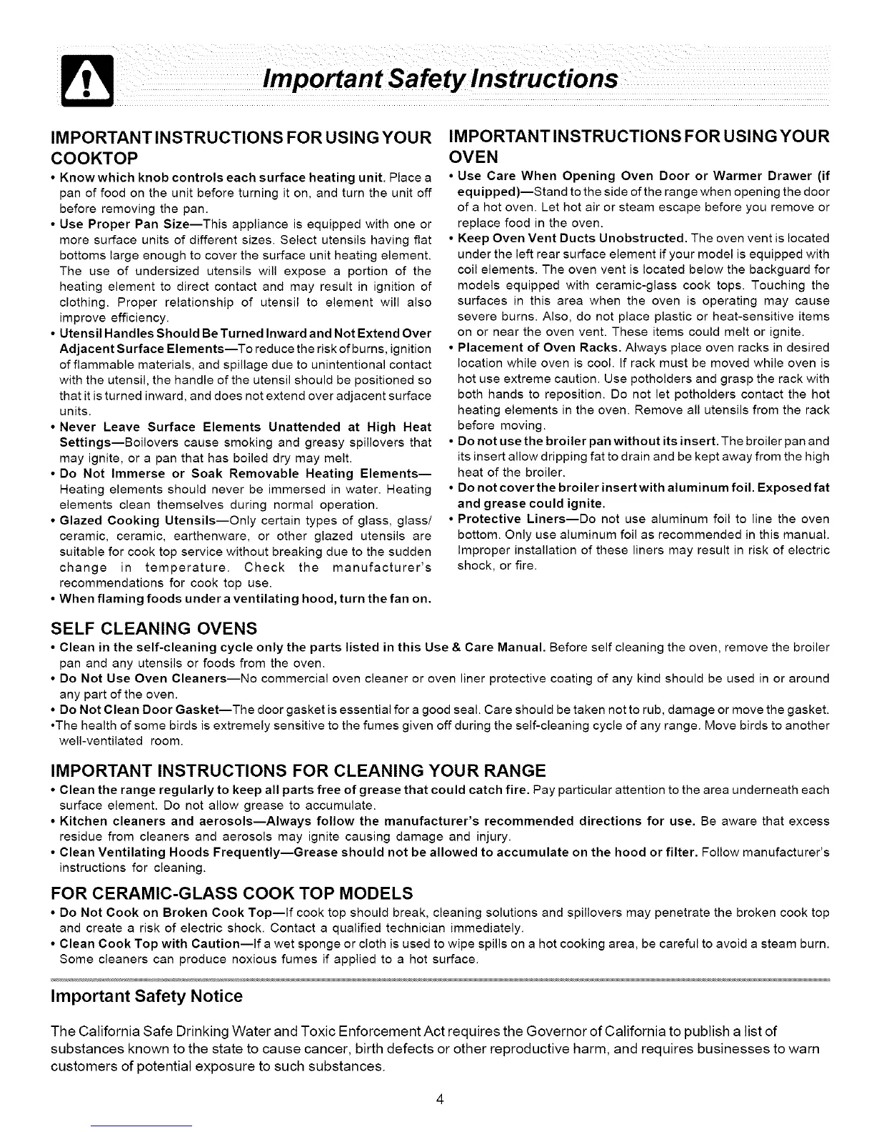 IMPORTANT INSTRUCTIONS FOR CLEANING YOUR RANGE