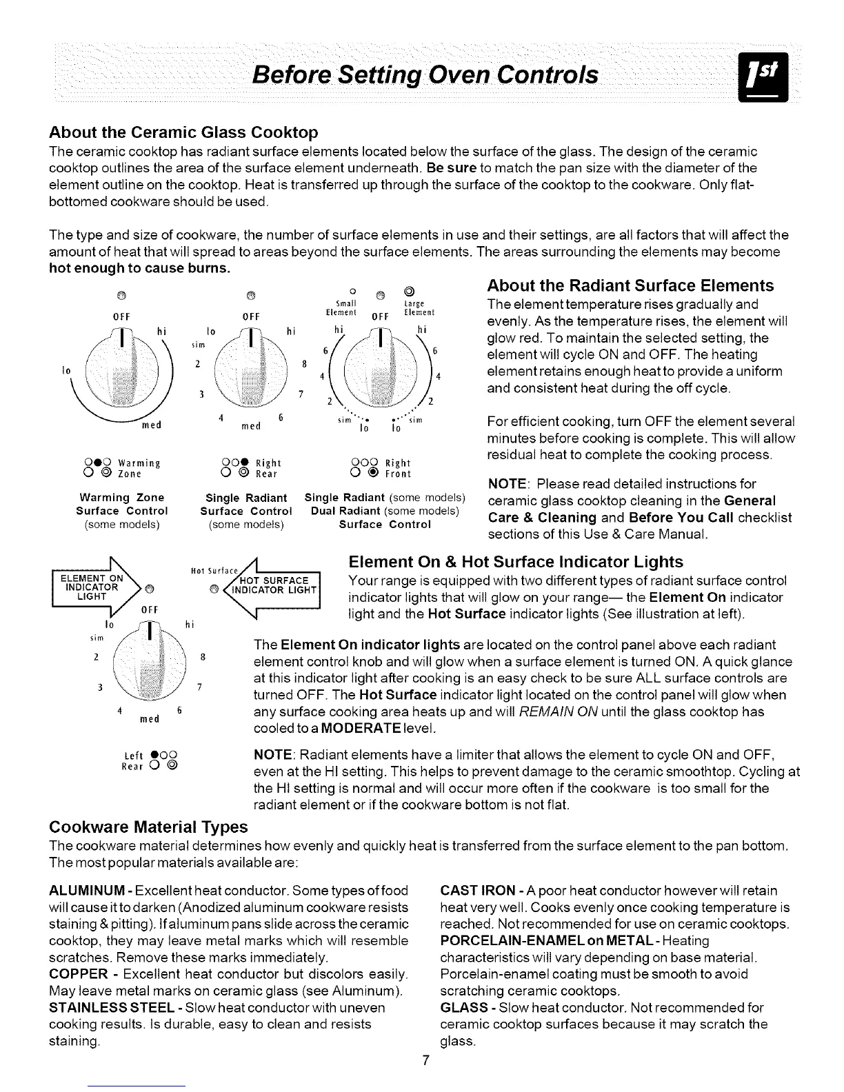 element control knob and will glow when a surface element is turned ON. A quick glance