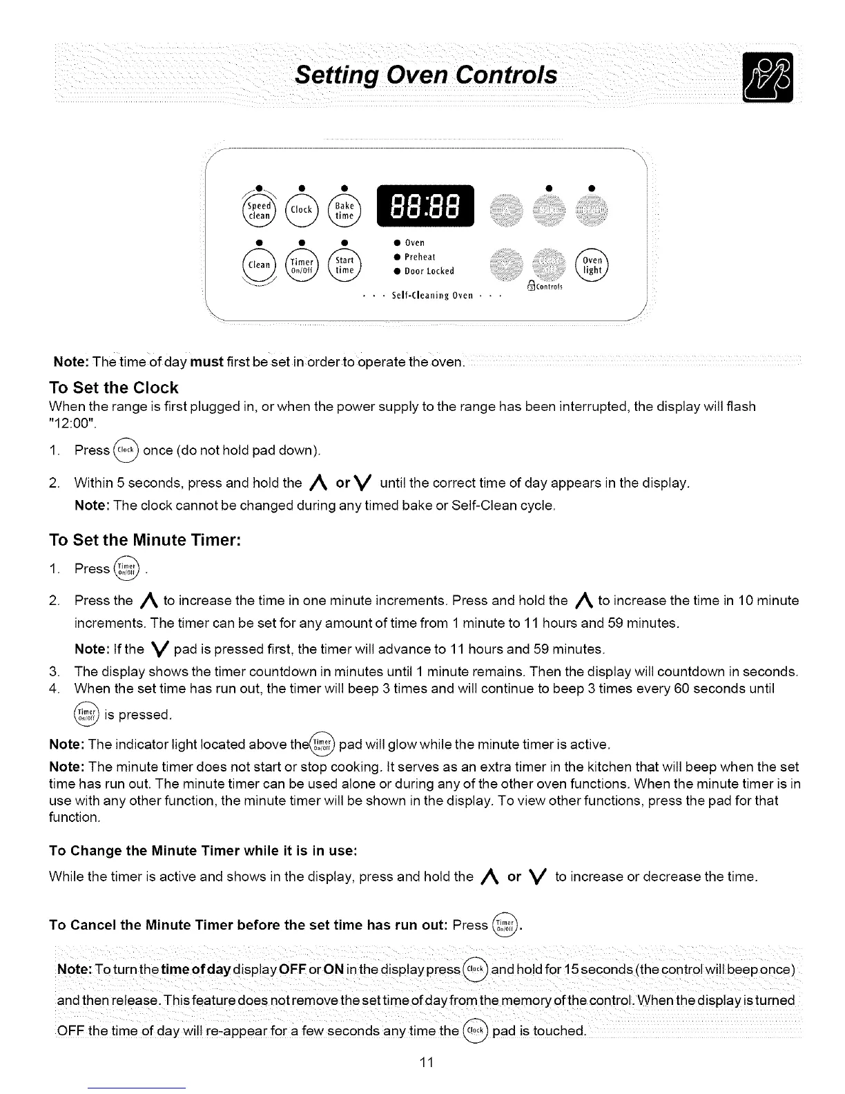 Note: The clock cannot be changed during any timed bake or Self-Clean cycle.