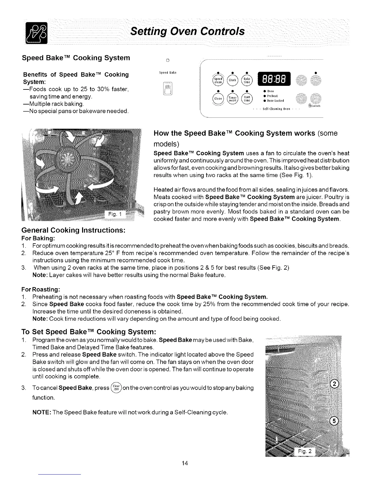 Speed Bake TM Cooking System uses a fan to circulate the oven's heat