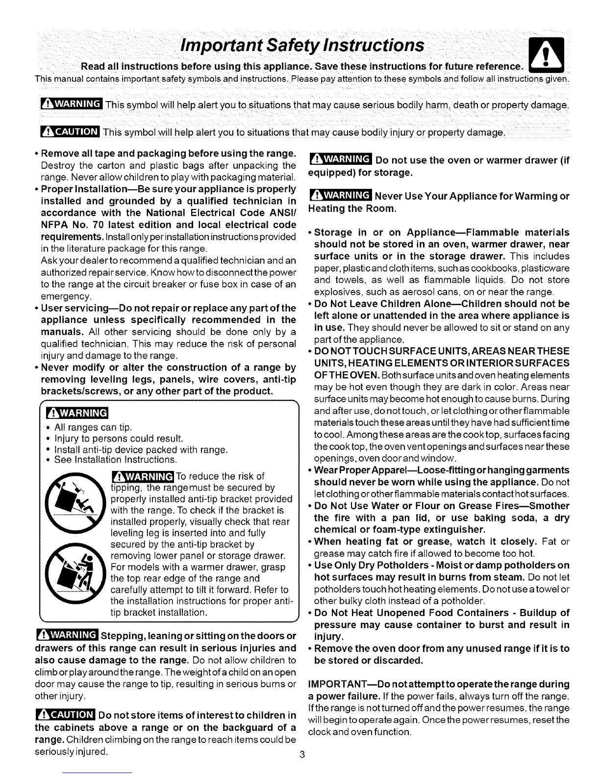 IMPORTANT--Do not attempt to operate the range during