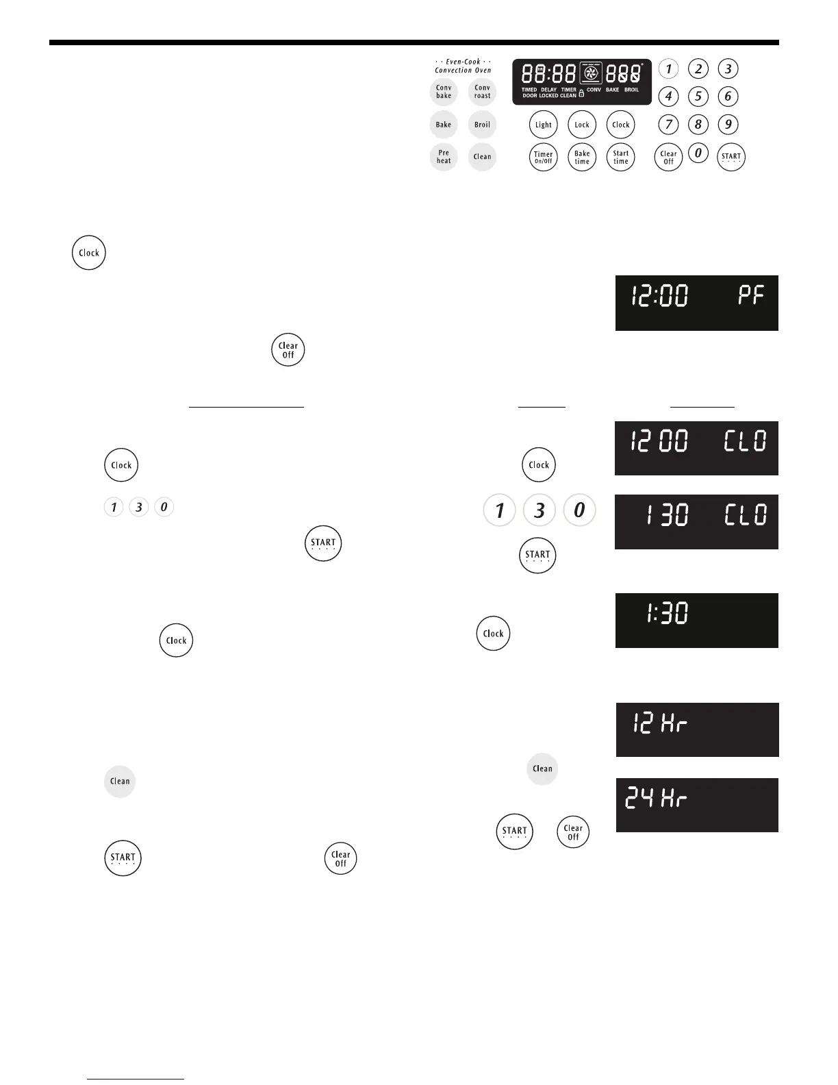 To set the clock (example below for 1:30):