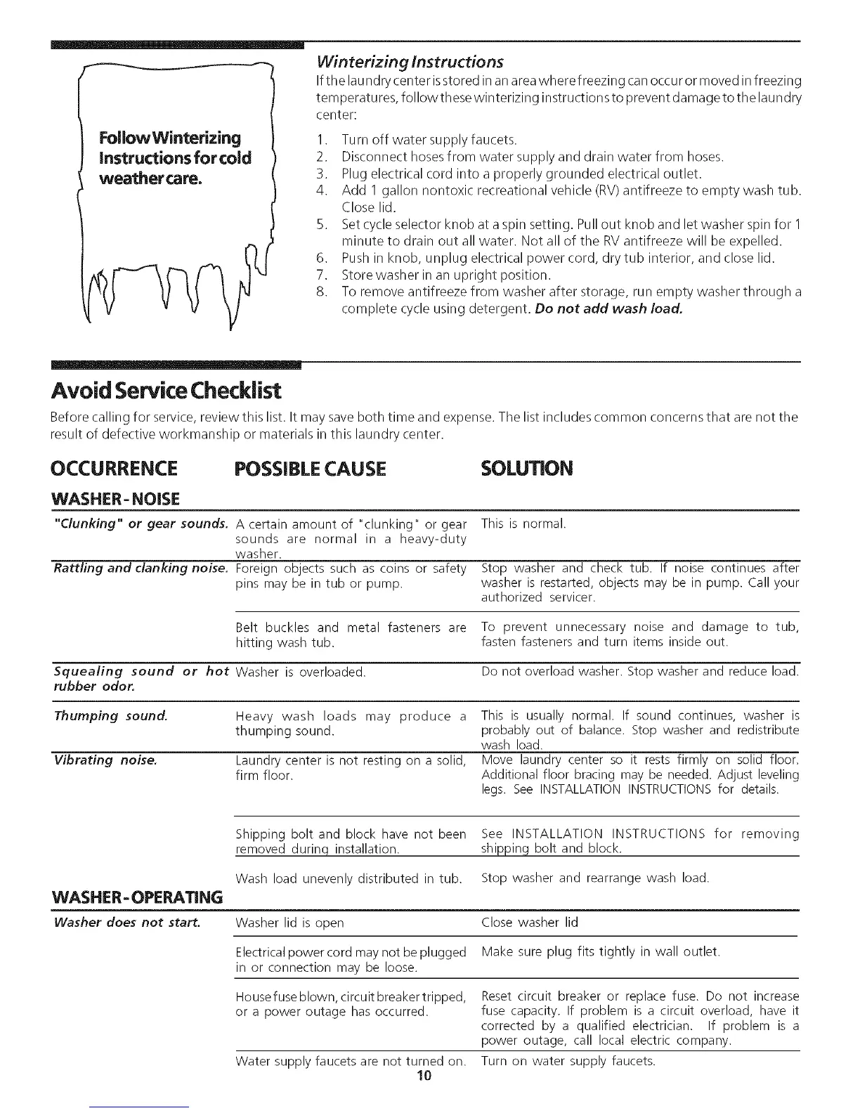 temperatures, followthese winterizing instructions to prevent damage to the laundry
