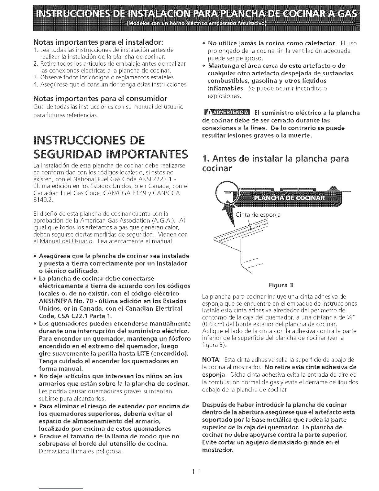 1. Leatodas las instru(ciones de instalaciOn antes de