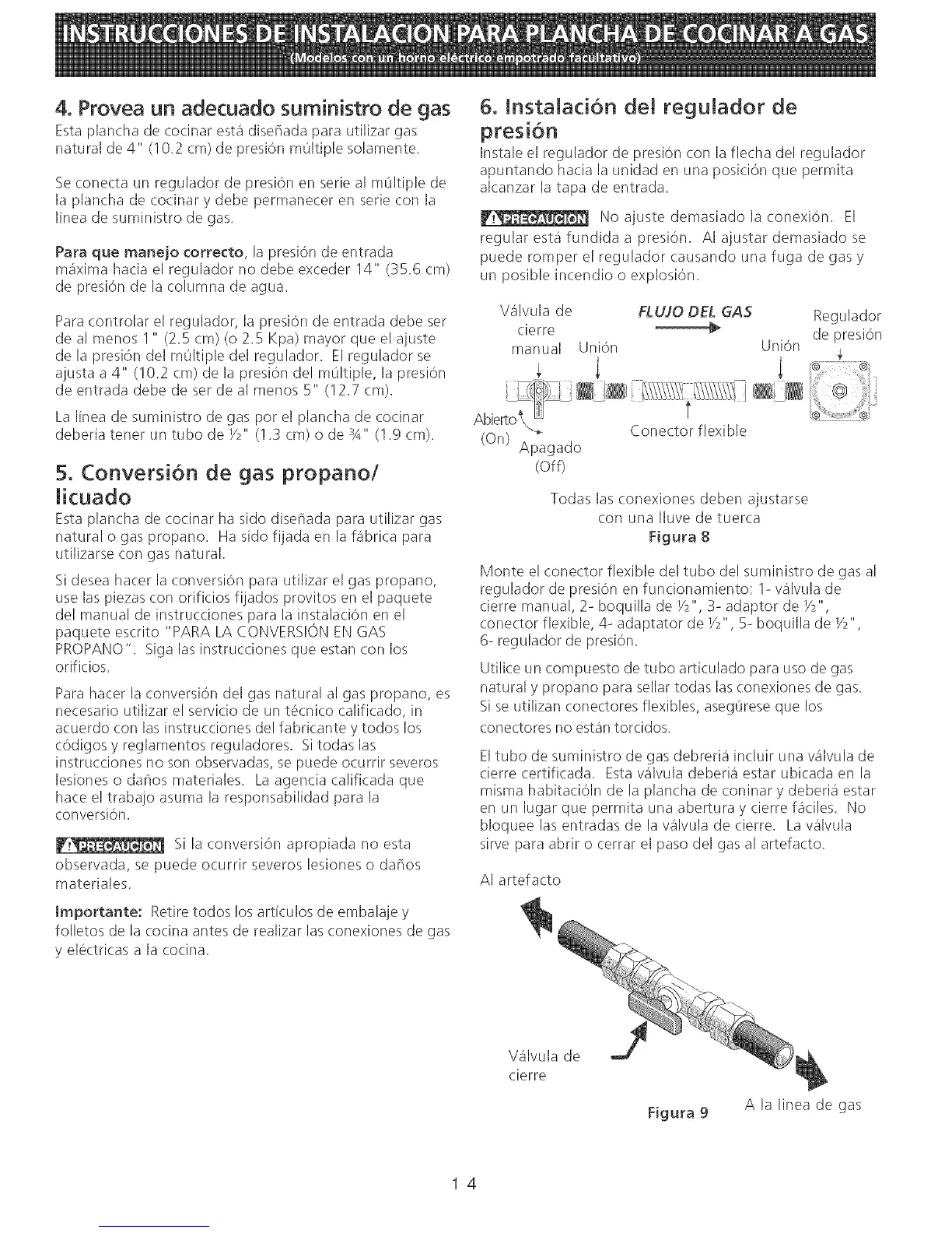 maxima hacia el regulador no debe exceder 14" (35.6 cm)