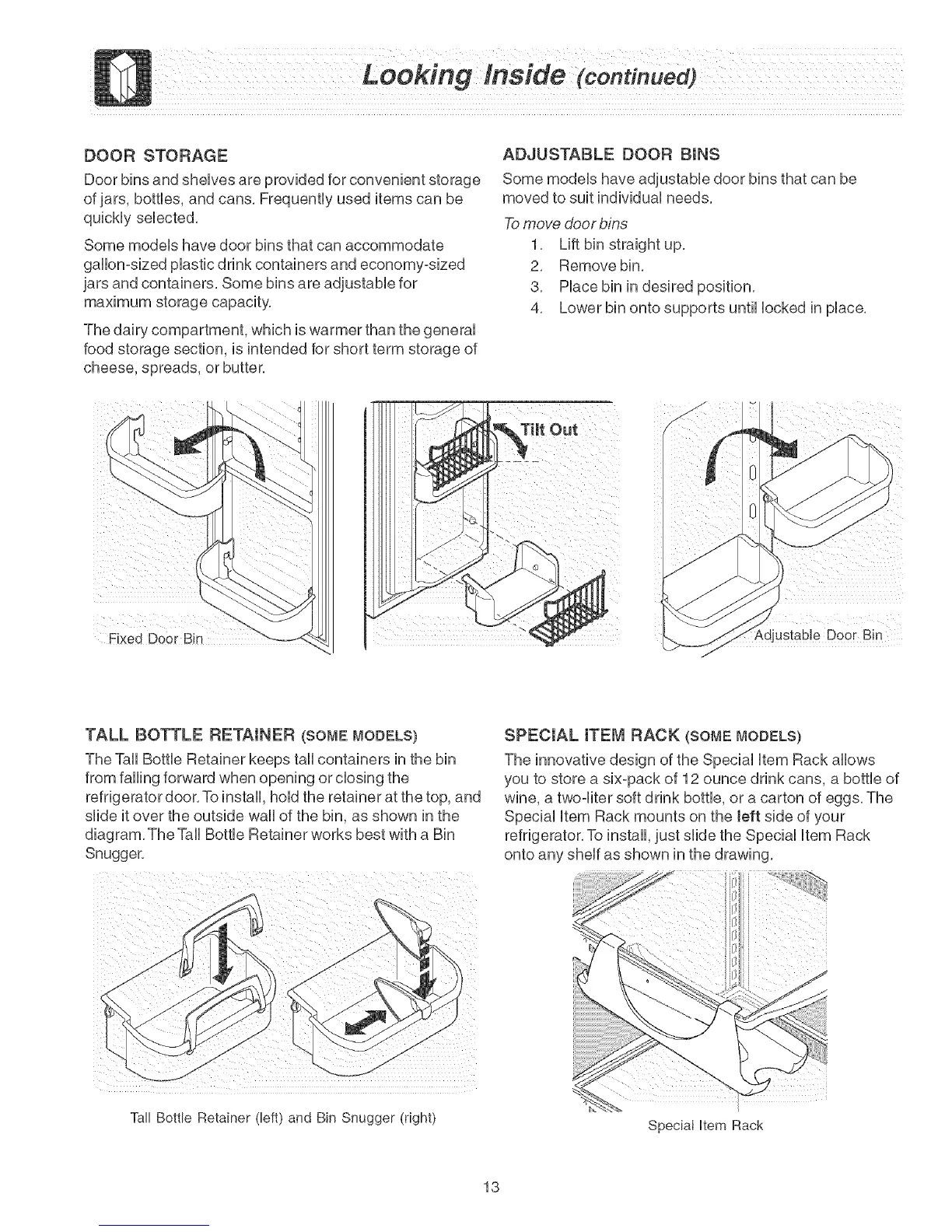 Some modeb have adjustabb door bins that can be