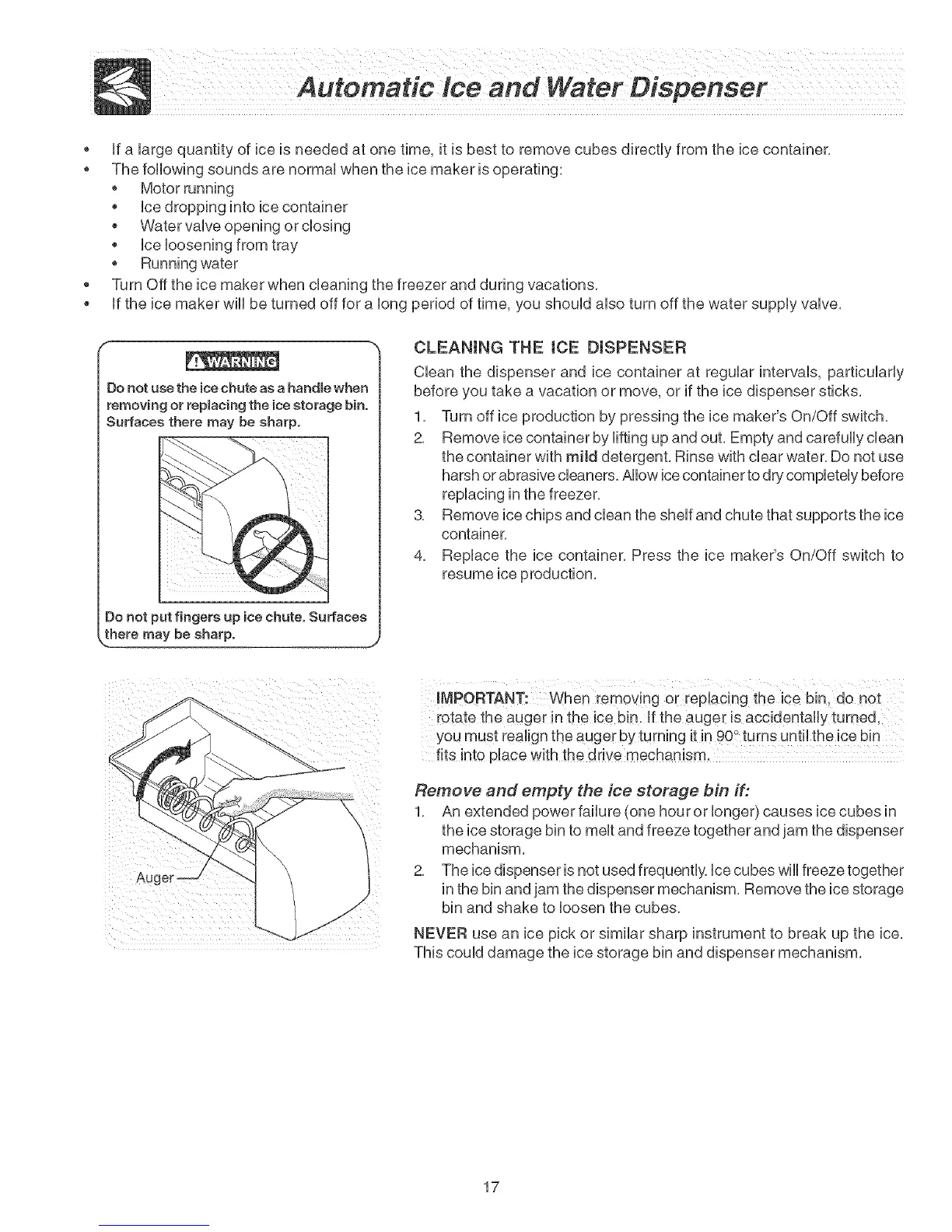 rotate the auger in the ice bin. If the auger is accidentally turned,