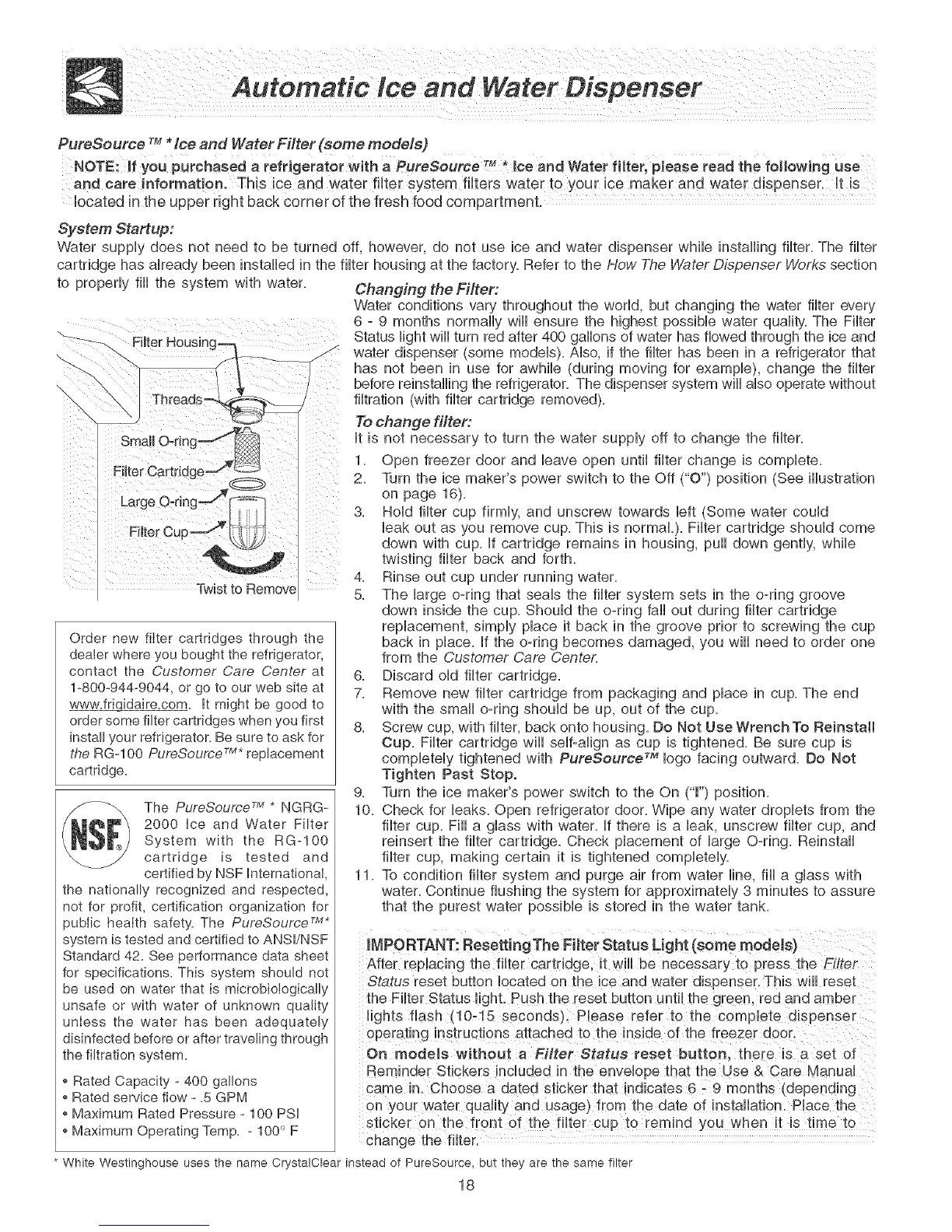 * White Westinghouse uses the name CrystaIClear instead of PureSource, but they are the same filter
