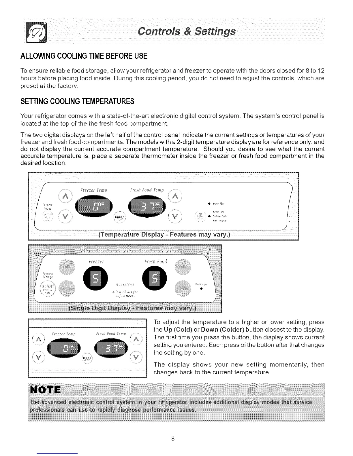 freezer and fresh food compartments. The models with a 2-digit temperature display are for reference only, and