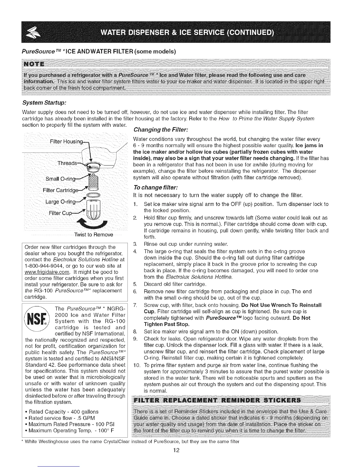 PureSource TM*ICE ANDWATER FILTER (some models)