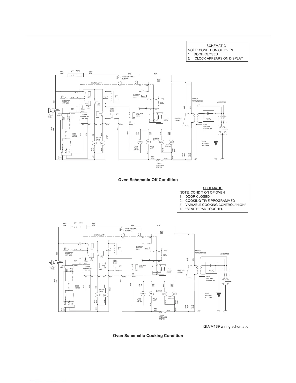 Frigidaire GLMV169D - WIRING SCHEMATIC; Oven Schematic-Off Condition; Oven Schematic-Cooking Condition