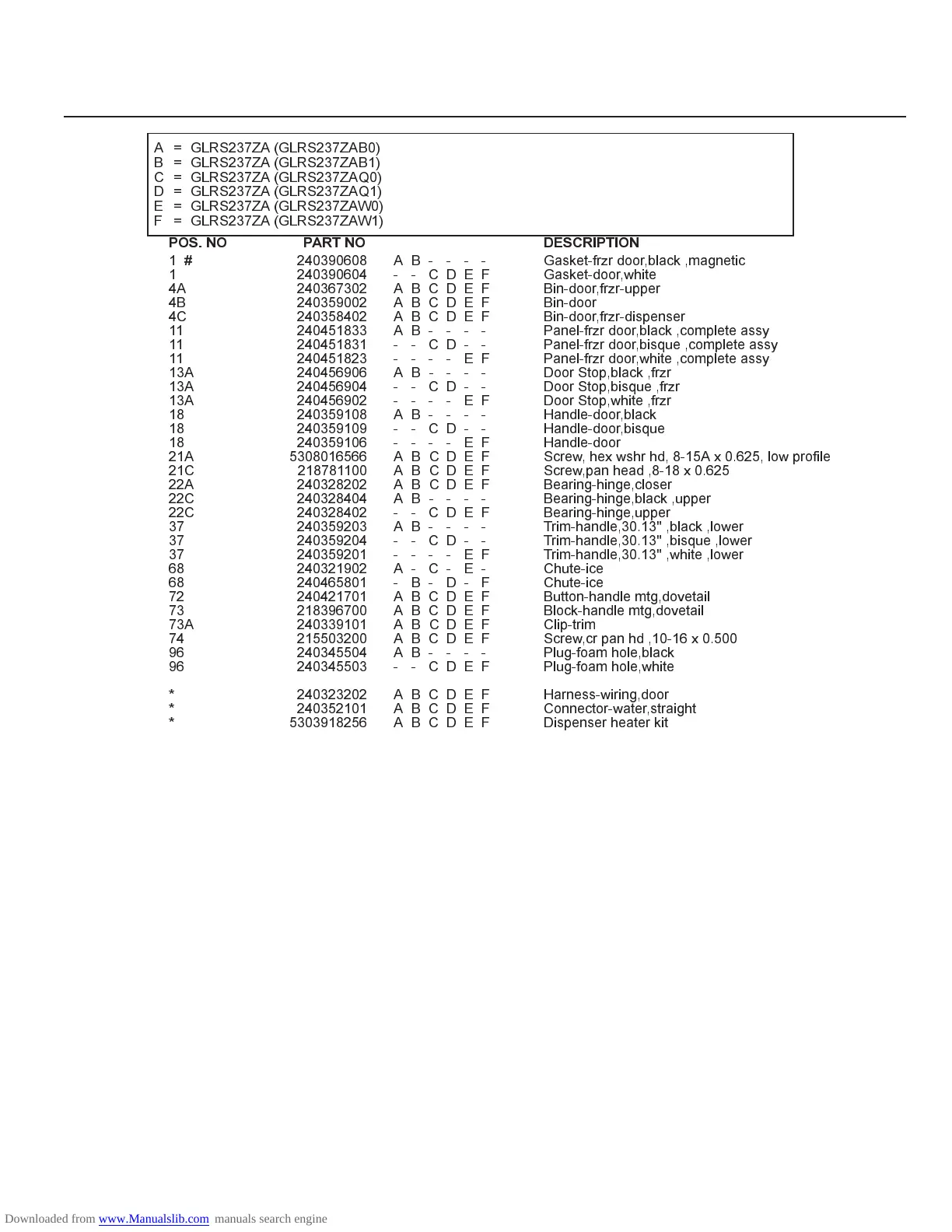 4A 240367302 A B C D E F Bin-door,frzr-upper