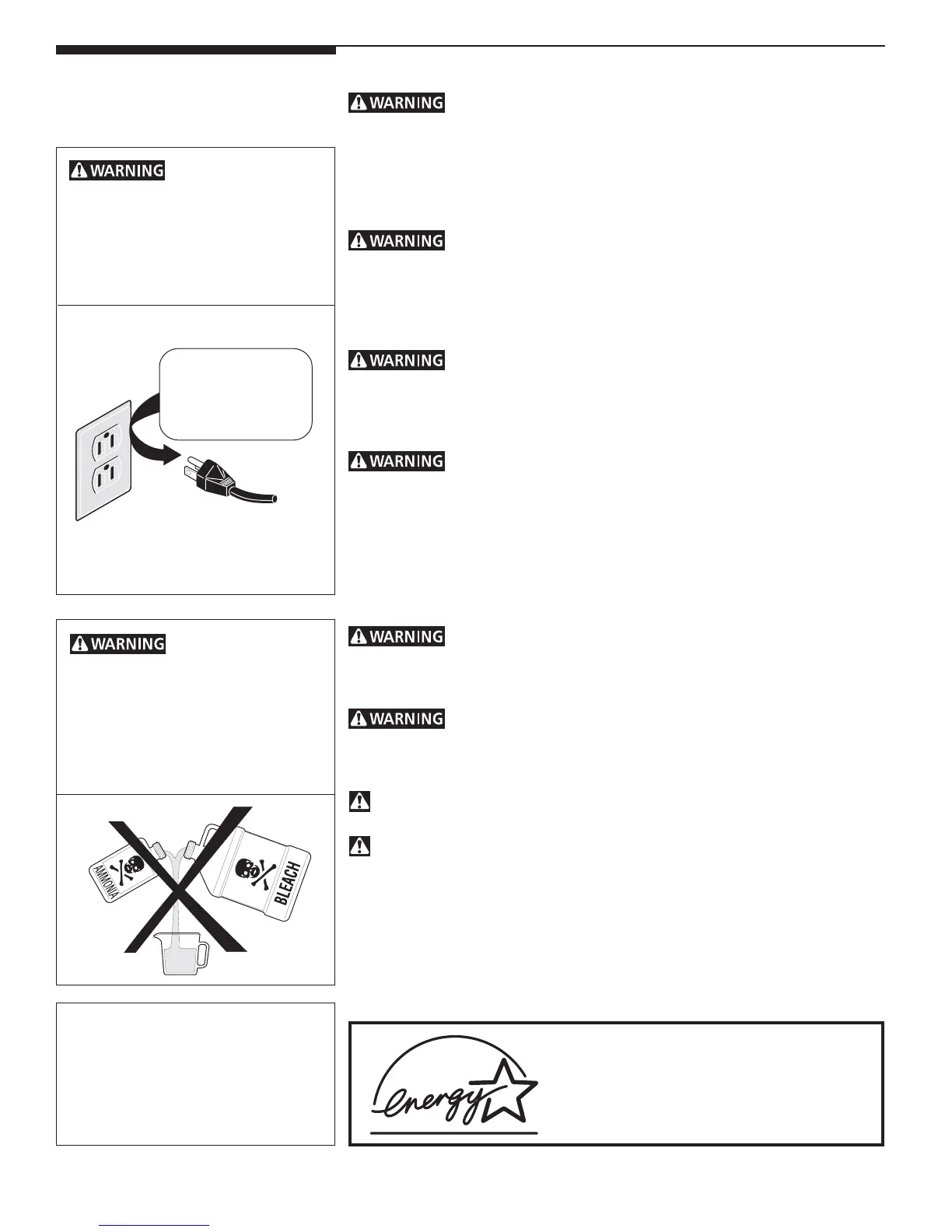 • Do not mix chlorine bleach with ammonia or acids such as vinegar.