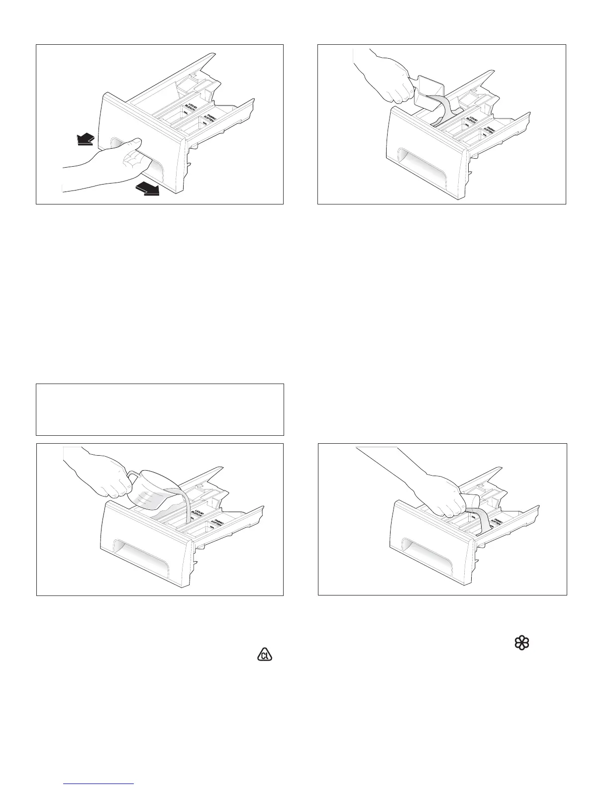 Add detergent, bleach and fabric softener to automatic dispenser following these steps:Add detergent, bleach and fabric softener to automatic dispenser following these steps: