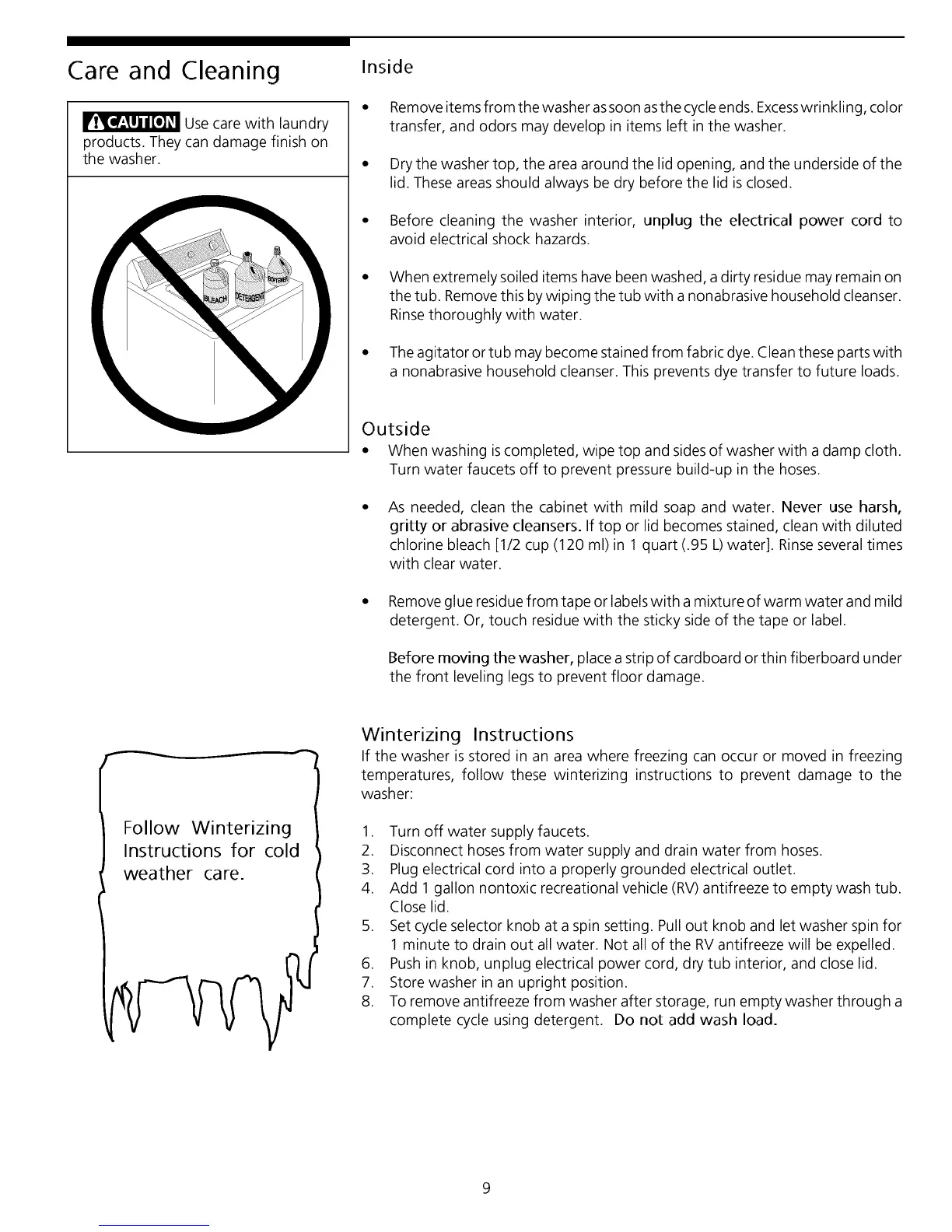 8. To remove antifreeze from washer after storage, run empty washer through a