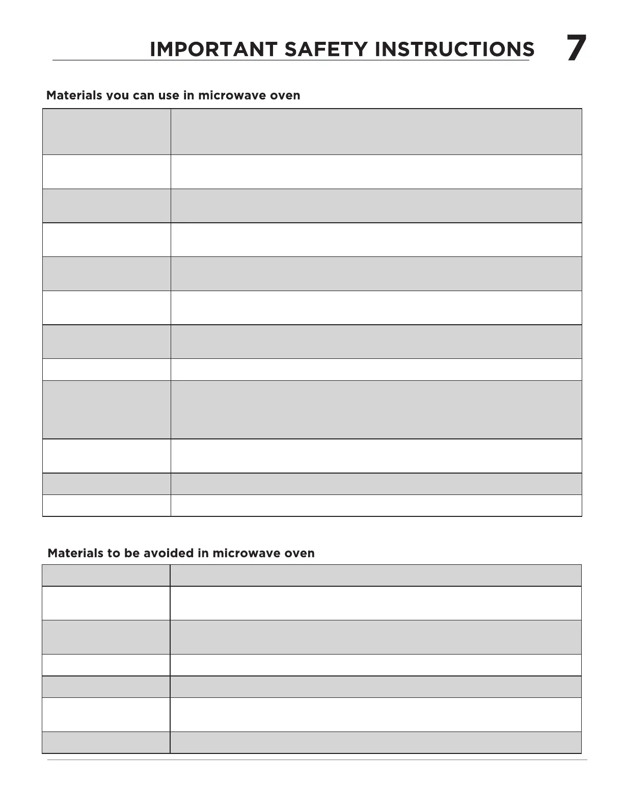 Wood Wood will dry out when used in the microwave oven and may split or crack.