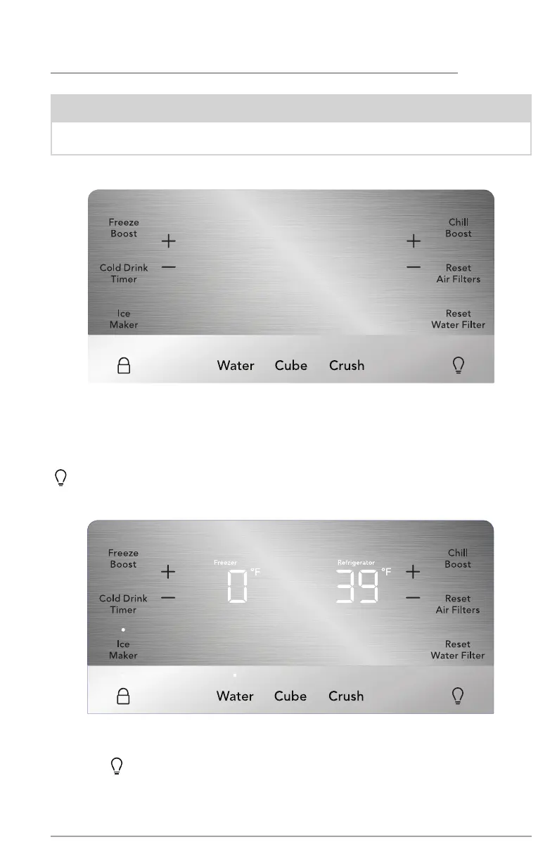 Crush and for 5 seconds. The display will show the current temperature/ice maker