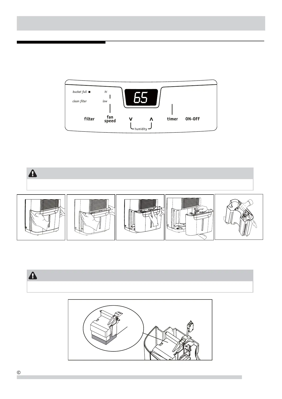e. Replace the empty bucket back into the unit and once seated correctly, the unit will start up again.