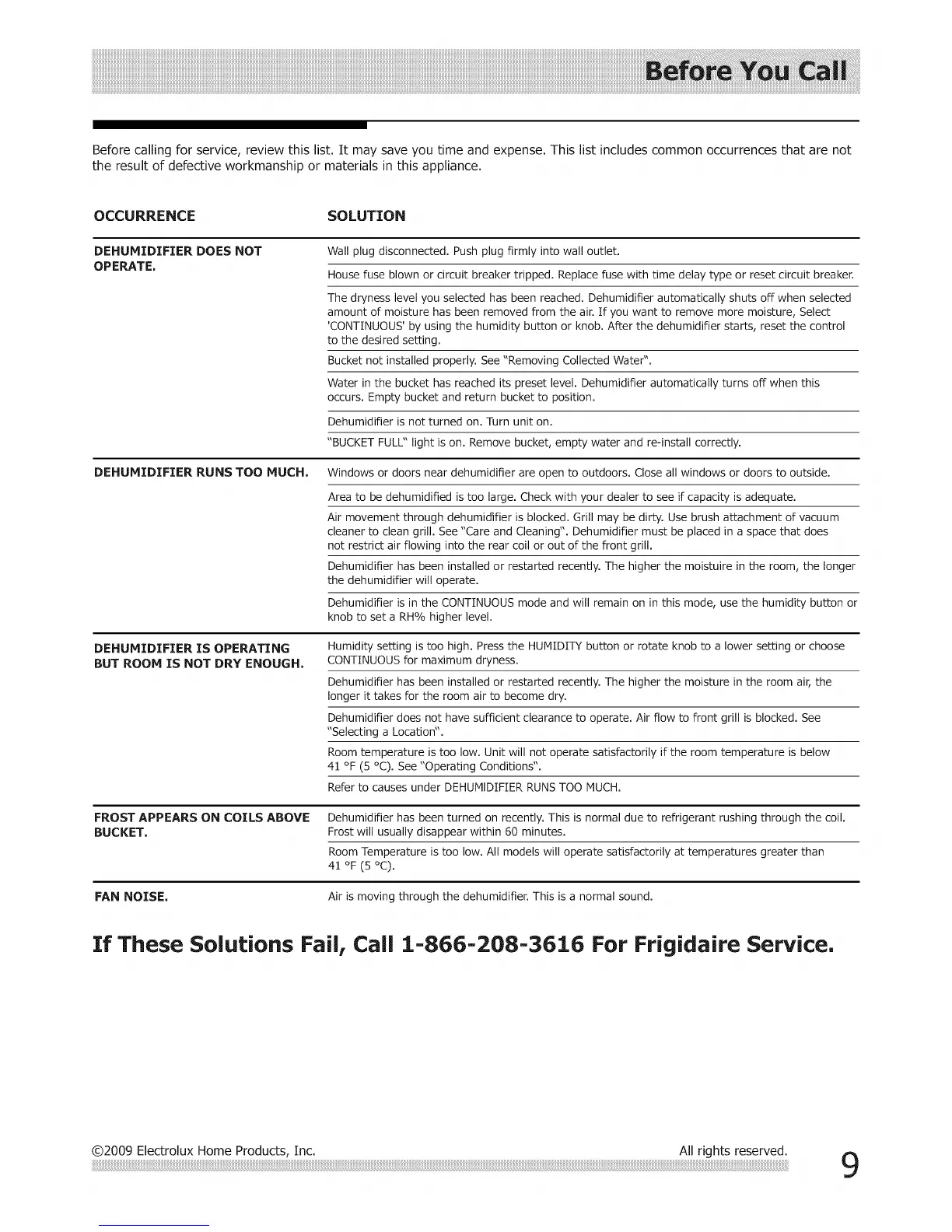 IfThese Solutions Fail,Call1-866-208-3616 For FrigidaireService.