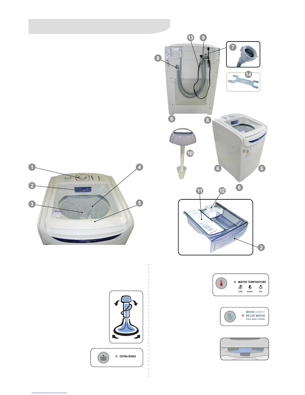 7. Water inlet hose and filter (already connected