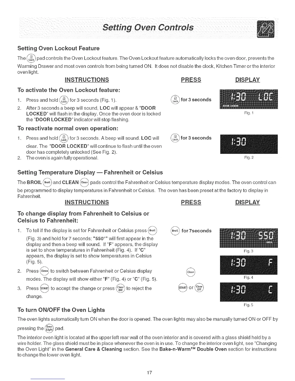 The BROIL _ and CLEAN _ pads contro( the Fahrenhe(t or Ce(s(us temperature d(sp(ay modes, The oven contro(