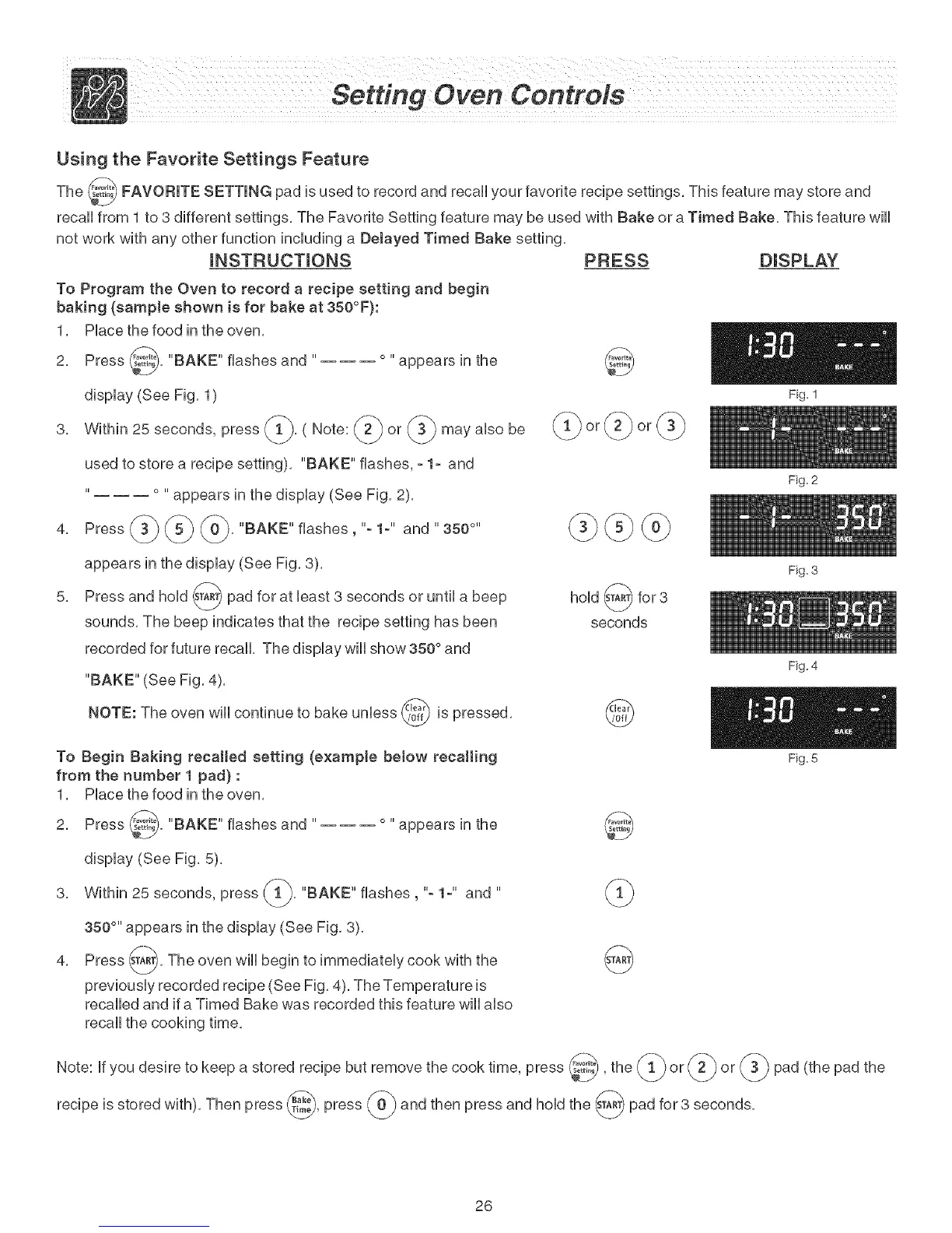 The @ FAVORITE SETTING pad is used to record and recall your favorite recipe settings, This feature may store and