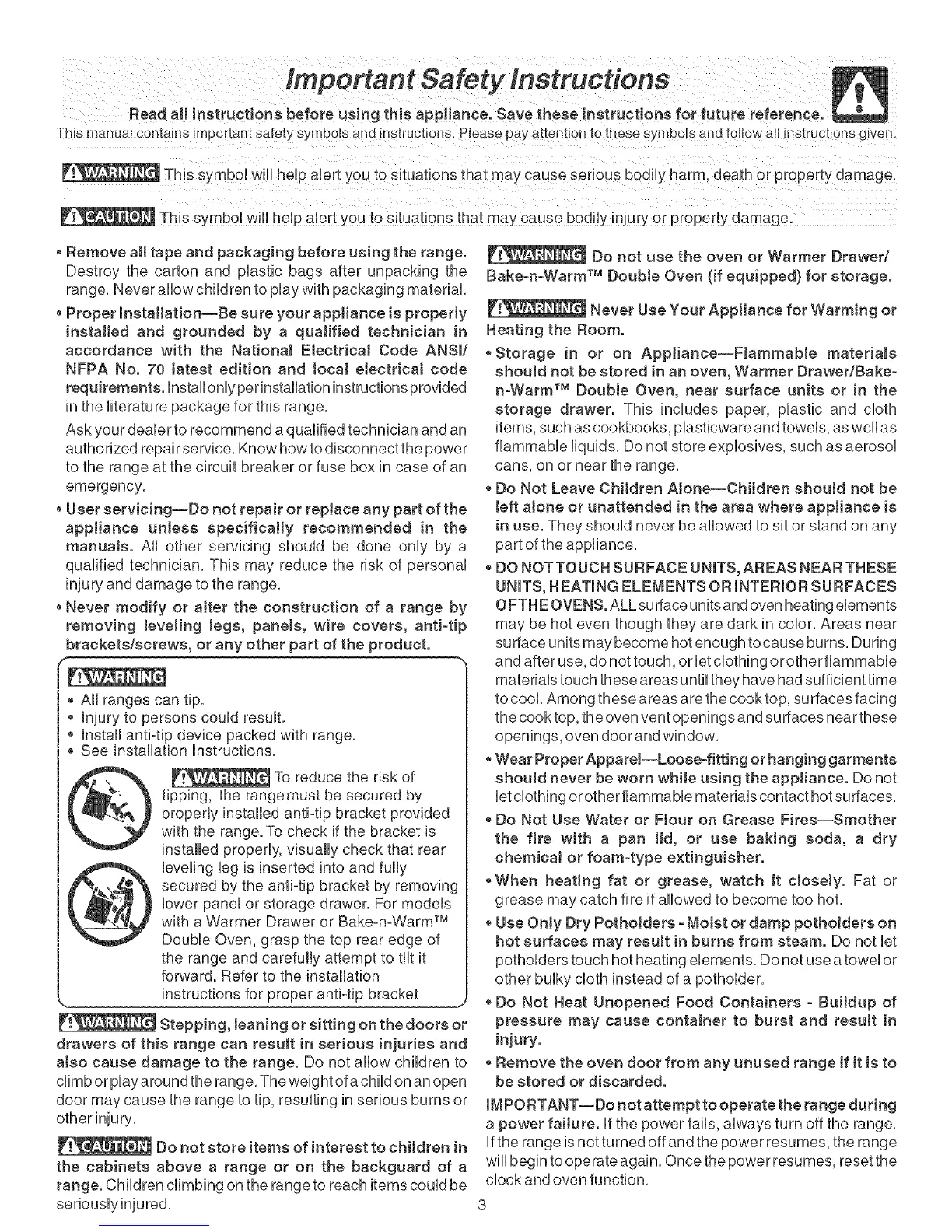 IMPORTANT--Do not attempt to operate the range during