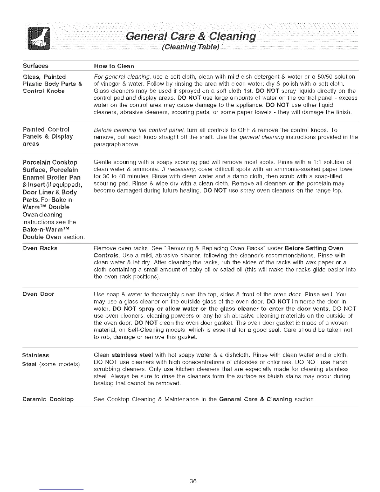 Ceramic Cooktop See Cooktop Cleaning & Maintenance in the General Care & Cleaning section.
