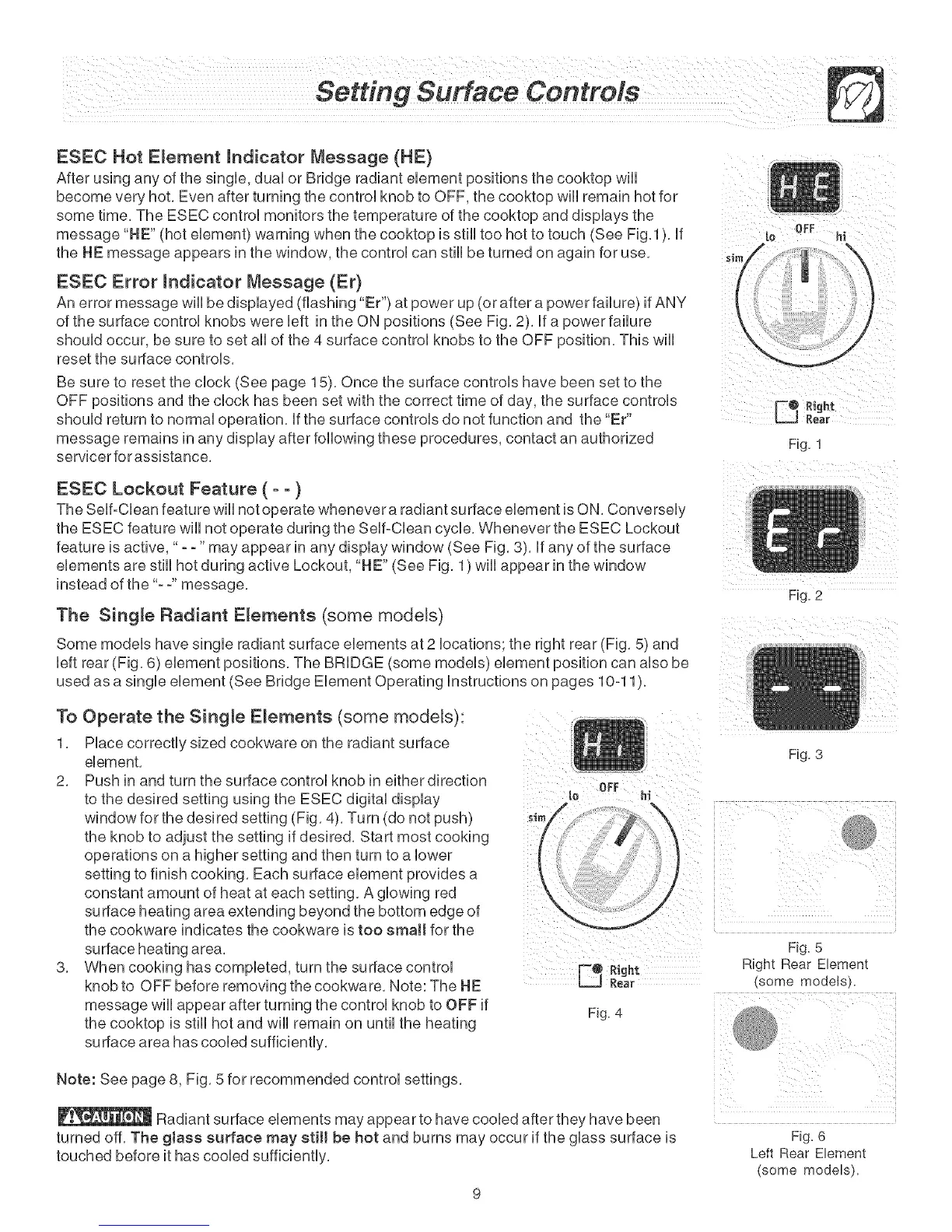 message "HE" (hot element) warning when the cooktop is still too hot to touch (See Fig,1 ), if