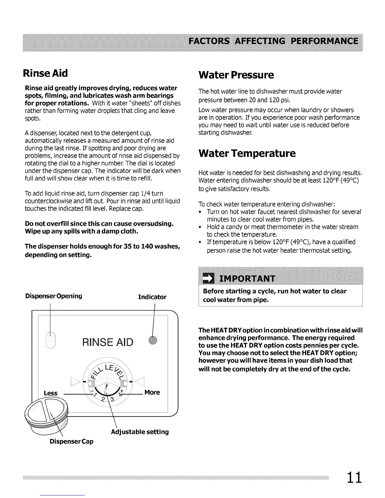 Hot water is needed for best dishwashing and drying results.
