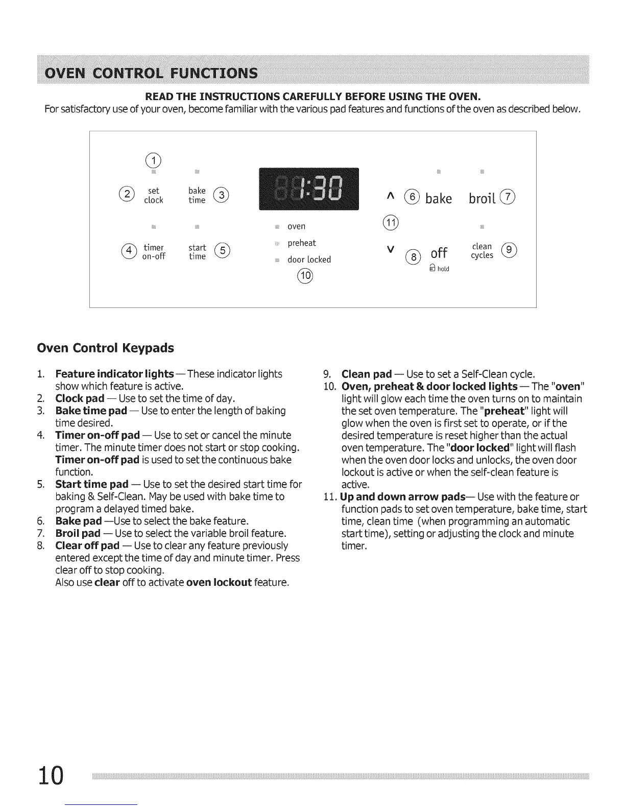 Forsatisfactory use of your oven, become familiar with the various pad features and functions of the oven asdescribed below.